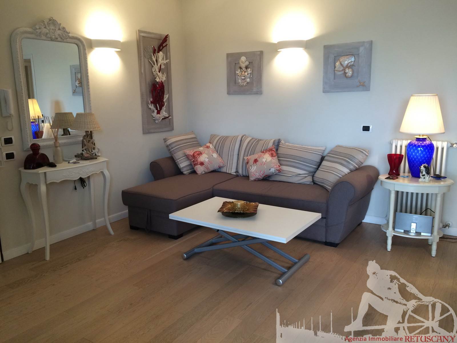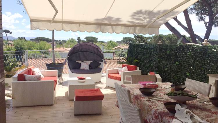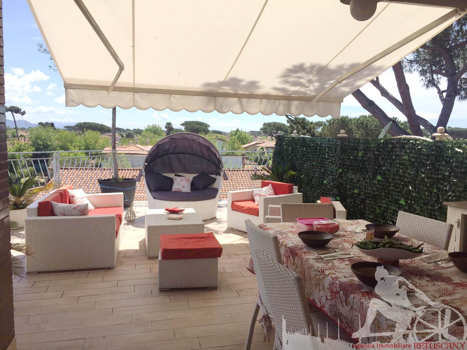 Beautiful penthouse apartment with over 40 square meters of roof terrace on the floor, on the third floor, with elevator, stable well maintained a few steps from the shops, the church and the center of Victoria Apuan. Less than 500 meters from the sea and 1300 meters from the center of Forte dei Marmi. Apartment of 85 square meters, with more than 40 sqm terrace. It composed of: living room with open kitchen, dining terrace and outdoor living room, hallway, master bedroom with ensuite shower and balcony, two double bedrooms, bathroom. With parking space in the condominium parking and large garden. Air conditioning and alarm system.