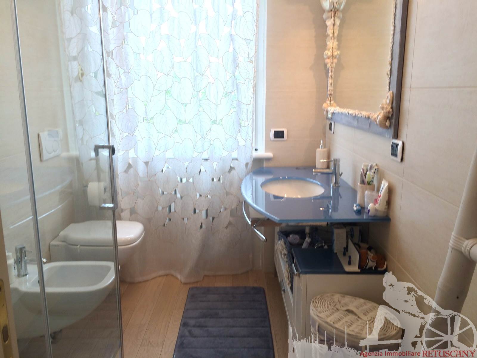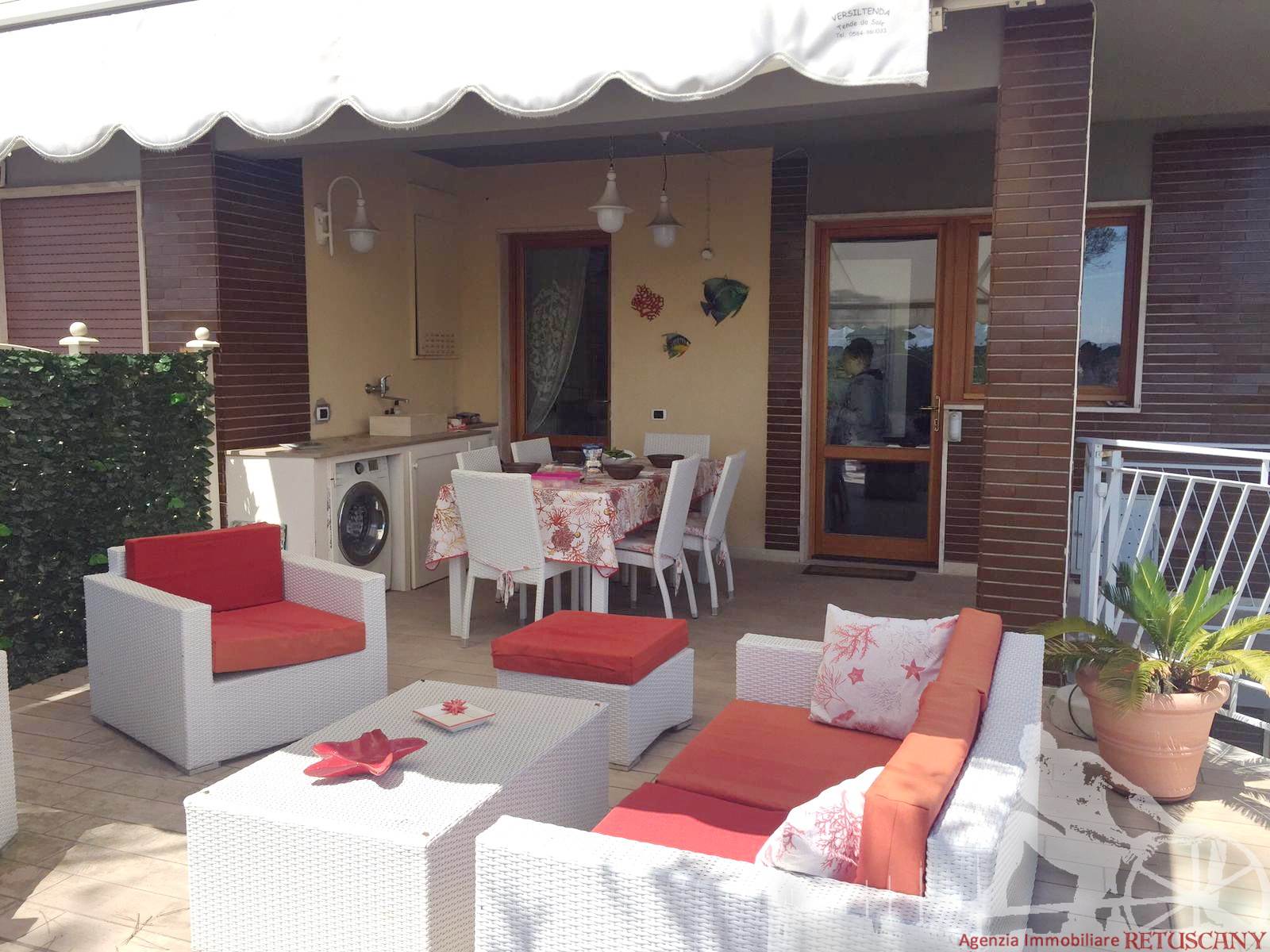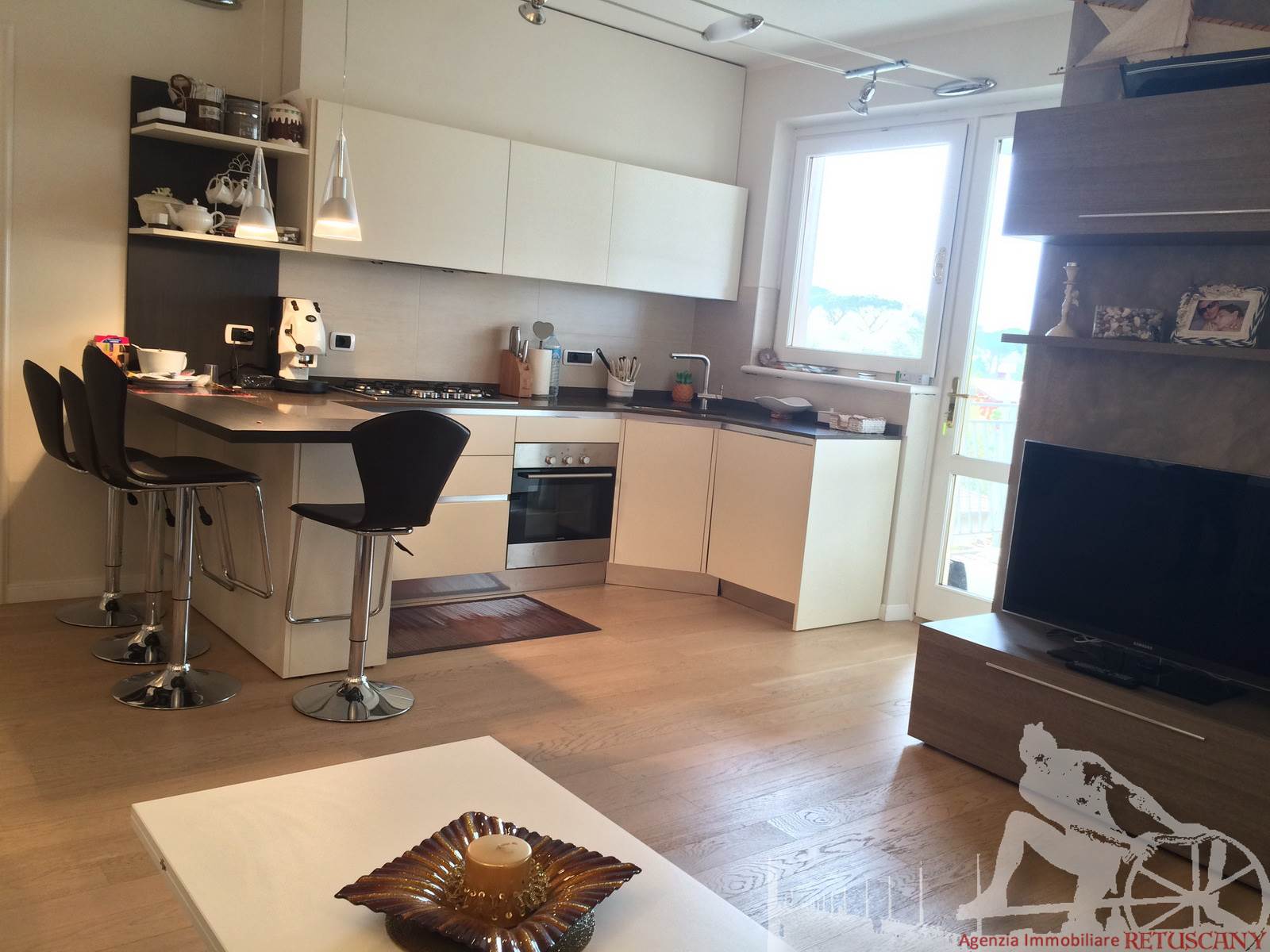 Beautiful penthouse apartment with over 40 square meters of roof terrace on the floor, on the third floor, with elevator, stable well maintained a few steps from the shops, the church and the center of Victoria Apuan. Less than 500 meters from the sea and 1300 meters from the center of Forte dei Marmi. Apartment of 85 square meters, with more than 40 sqm terrace. It composed of: living room with open kitchen, dining terrace and outdoor living room, hallway, master bedroom with ensuite shower and balcony, two double bedrooms, bathroom. With parking space in the condominium parking and large garden. Air conditioning and alarm system.