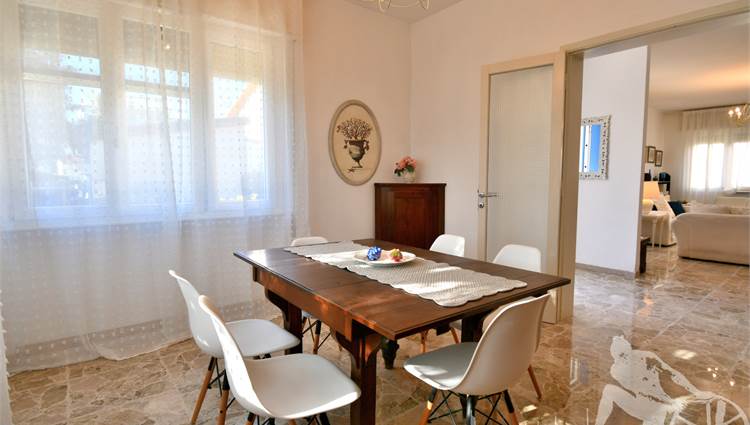AVAILABLE FOR SUMMER LEASE - Single Villa distributed on two floors above ground with perimeter garden. Distance from the sea about 400 meters. On the ground floor: living room, lunch, kitchen, double bedroom, bathroom with shower. First floor: Two double rooms with balcony, single room, bathroom with bathtub. With air conditioning in the rooms, Internet, parking space, safe, terrace for outdoor dining.