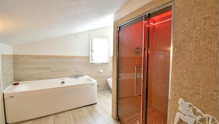 AVAILABLE FOR SUMMER RENTAL - Side-by-side villa arranged on various levels connected by an internal elevator serving all floors. Distance from the sea about 500 meters. On the ground floor: living room, dining kitchen, laundry service bathroom, hallway. On the first floor: double bedroom, single bedroom with balcony, two bathrooms, hallway. On the attic floor: double bedroom, bathroom with hot tub and steam room, hallway. With porch for lunch and outdoor living, barbecue. Alarm system, external video surveillance, air conditioning, internet, home automation, mosquito control system in the garden.