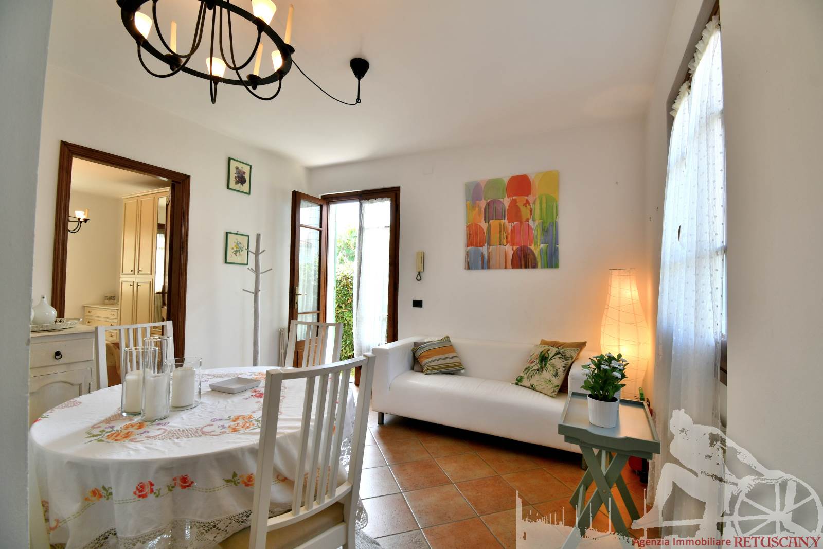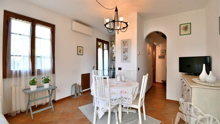 DISPONIBILE PER LA LOCAZIONE ANNUALE - Villetta affiancata distribuita su due piani fuori terra oltre alla taverna, con piccolo giardino su due lati. Distanza dal mare 650 metri. Al piano terra: soggiorno pranzo con angolo cottura, camera matrimoniale, bagno con doccia. Al piano primo mansardato: camera matrimoniale con bagno con doccia, camera doppia, bagno con vasca. Al piano interrato: taverna, ripostiglio, posto letto. Con impianto di aria condizionata, impianto di allarme, internet.