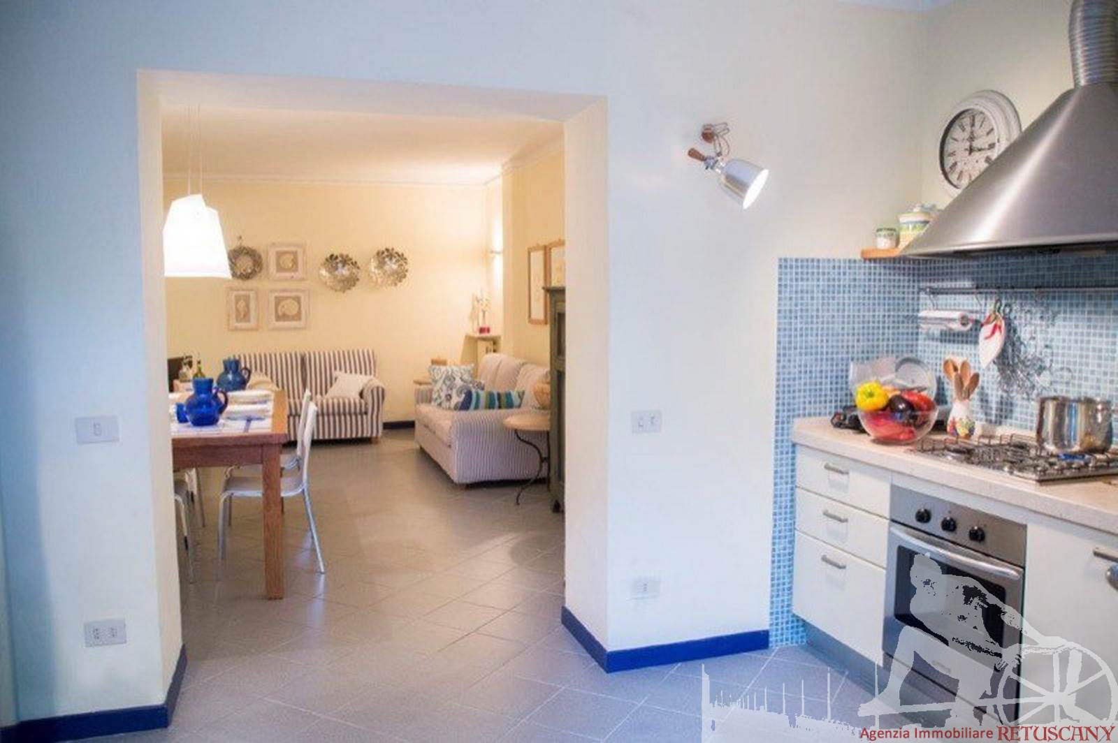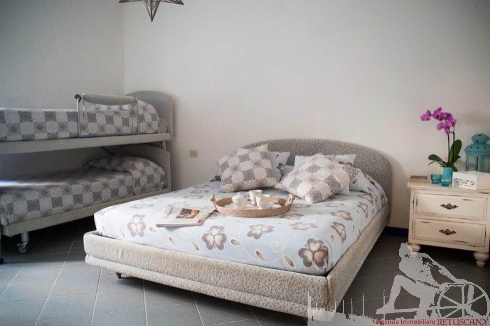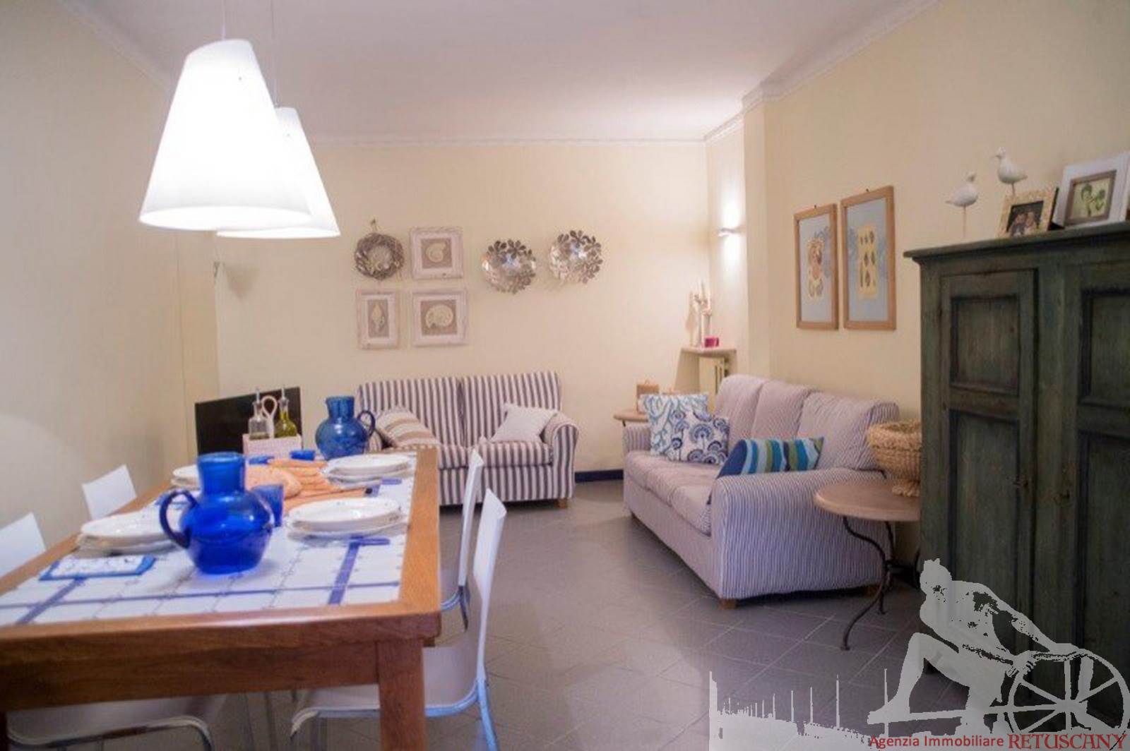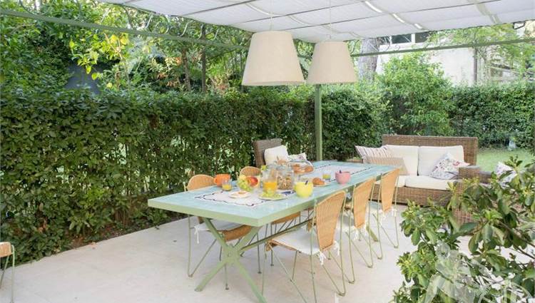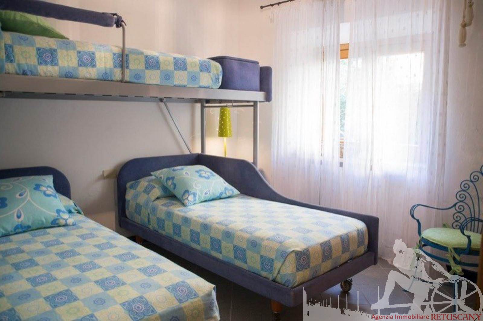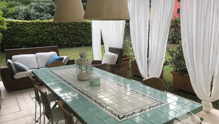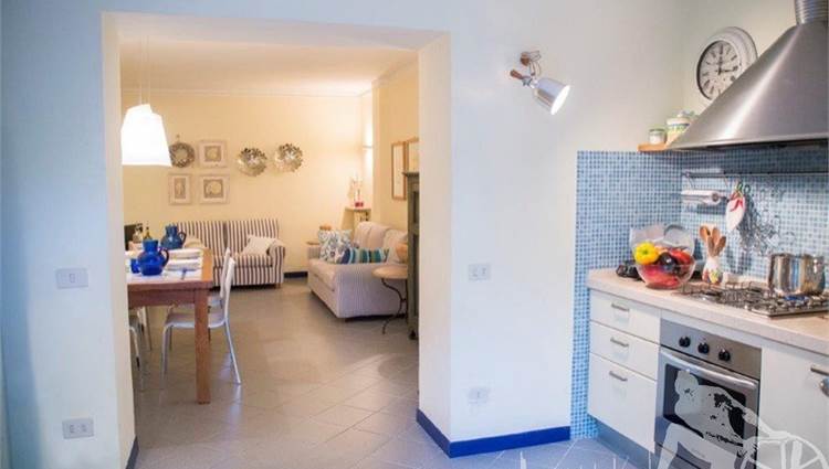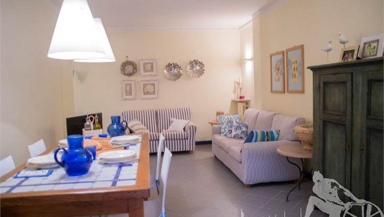 Appartamento posto al piano terra di villa d'epoca fronte mare. Composto da: soggiorno pranzo con cucina a vista con ampia veranda per pranzare all'aperto, ampia camera matrimoniale con letto a castello aggiuntivo, camera doppia con terzo letto singolo a castello, un bagno. Con giardino esclusivo, ottimamente arredato. Con aria condizionata, internet wi-fi, posto auto e lavanderia esterna.
