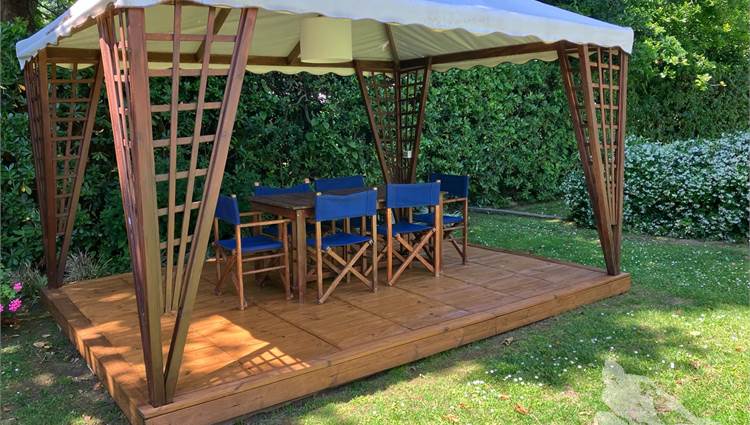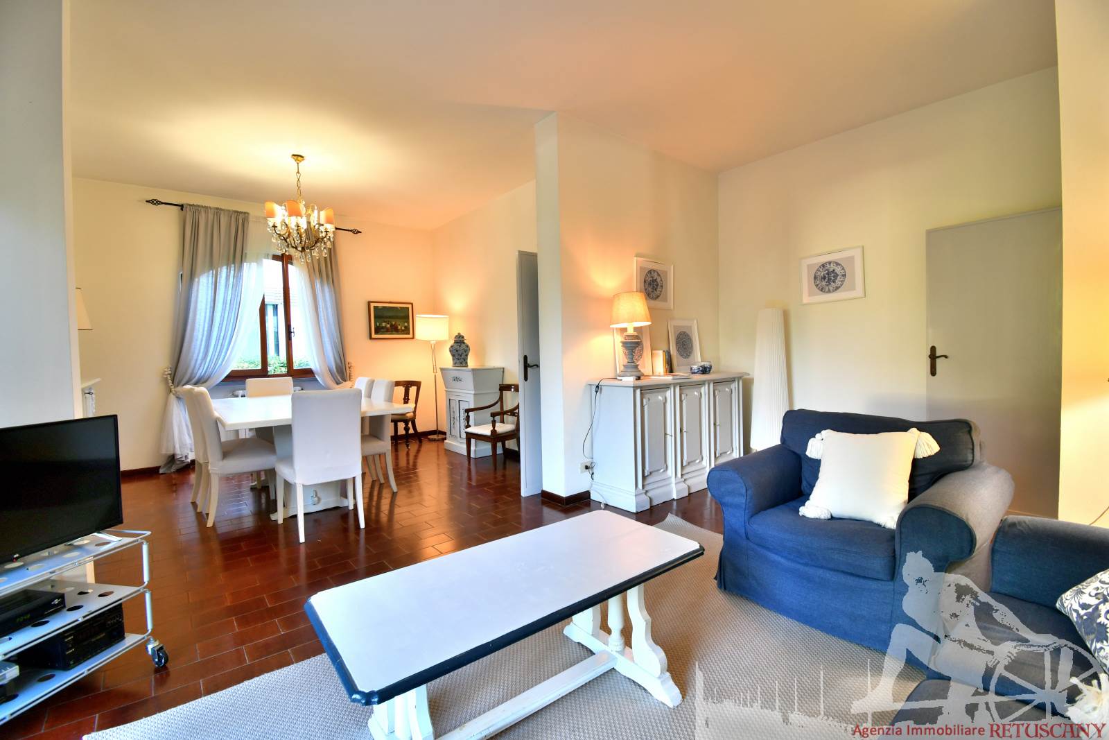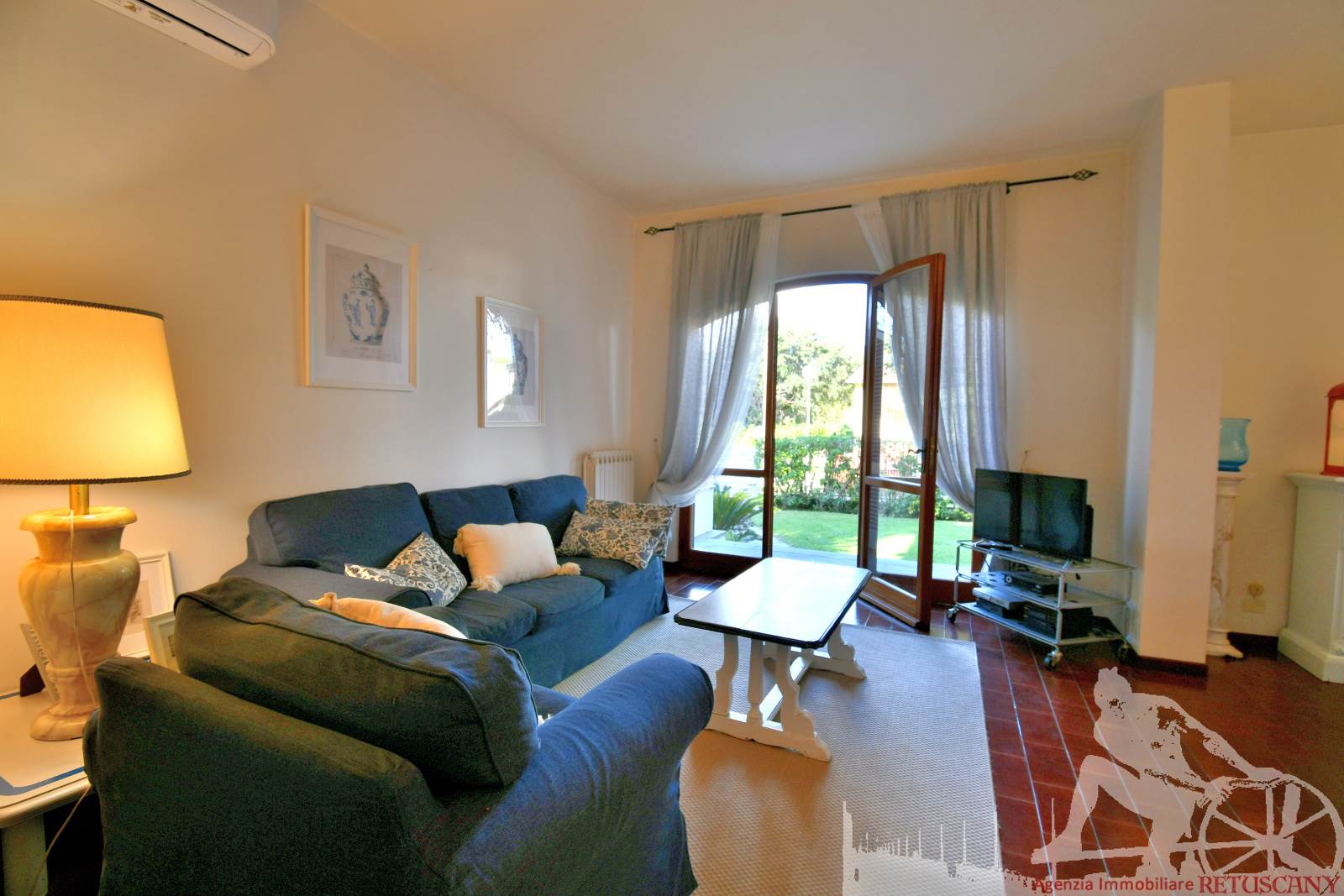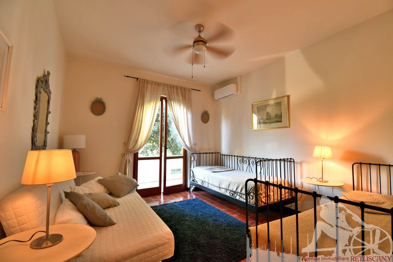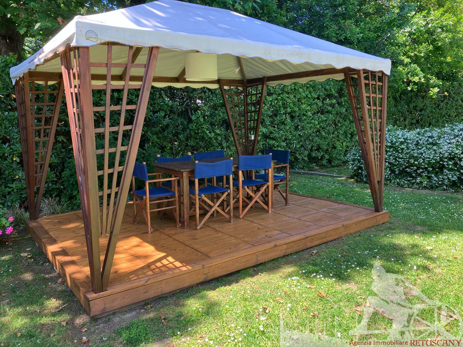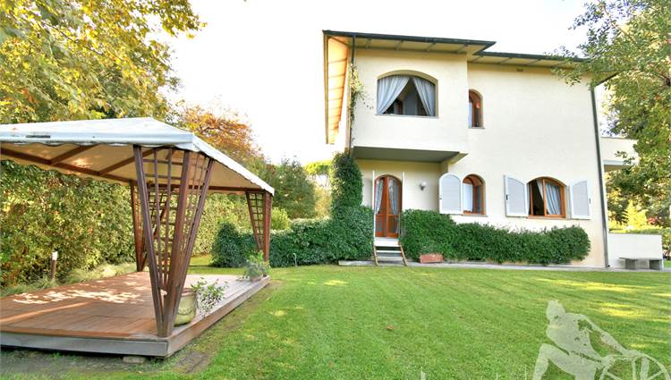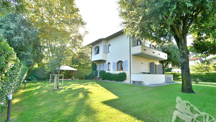 DISPONIBILE PER LOCAZIONE TURISTICA ESTIVA - Villa singola distribuita su due piani fuori terra con bel giardino circostante con gazebo per il pranzo e il soggiorno all'aperto e posti auto interni alla proprietà. Distanza dal mare circa 750 metri ubicata in strada interna. Al piano terra: ingresso, soggiorno pranzo con terrazza per il pranzo e il soggiorno all'aperto, cucina completa di elettrodomestici moderni, camera singola, bagno, ripostiglio. Al piano primo: due camere matrimoniali con balcone, camera doppia con terrazza coperta, stanza armadi, bagno, disimpegno. Con lavanderia al piano interrato con accesso dall'esterno. Aria condizionata, cancello elettrico, impianto automatico di irrigazione.
