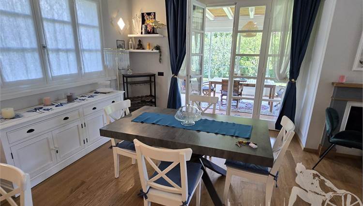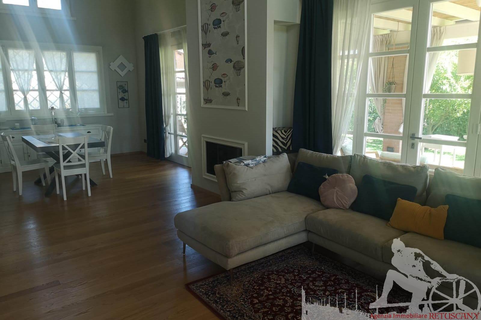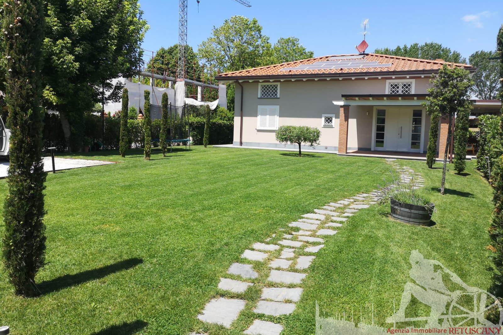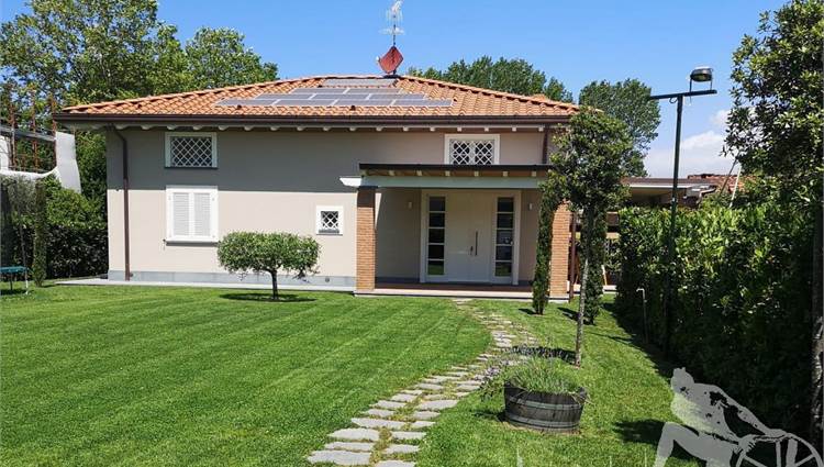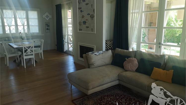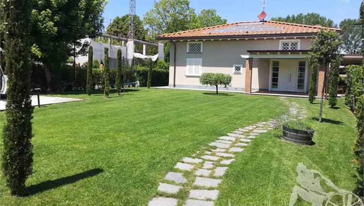 DISPONIBILE PER LA LOCAZIONE ESTIVA - Villa singola distribuita su due livelli con bel giardino circostante, di recente costruzione, ben arredata. Distanza dal mare circa 800 metri. Composta da: veranda, soggiorno pranzo, cucina, tre camere, quattro bagni, disimpegni, lavanderia. Con aria condizionata, allarme, internet. No animali.