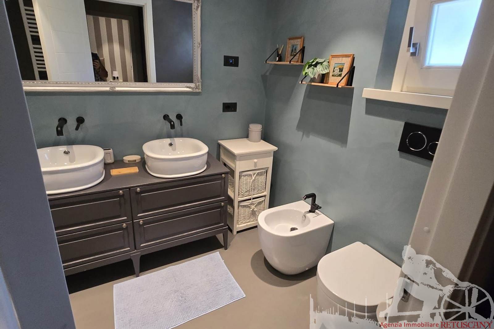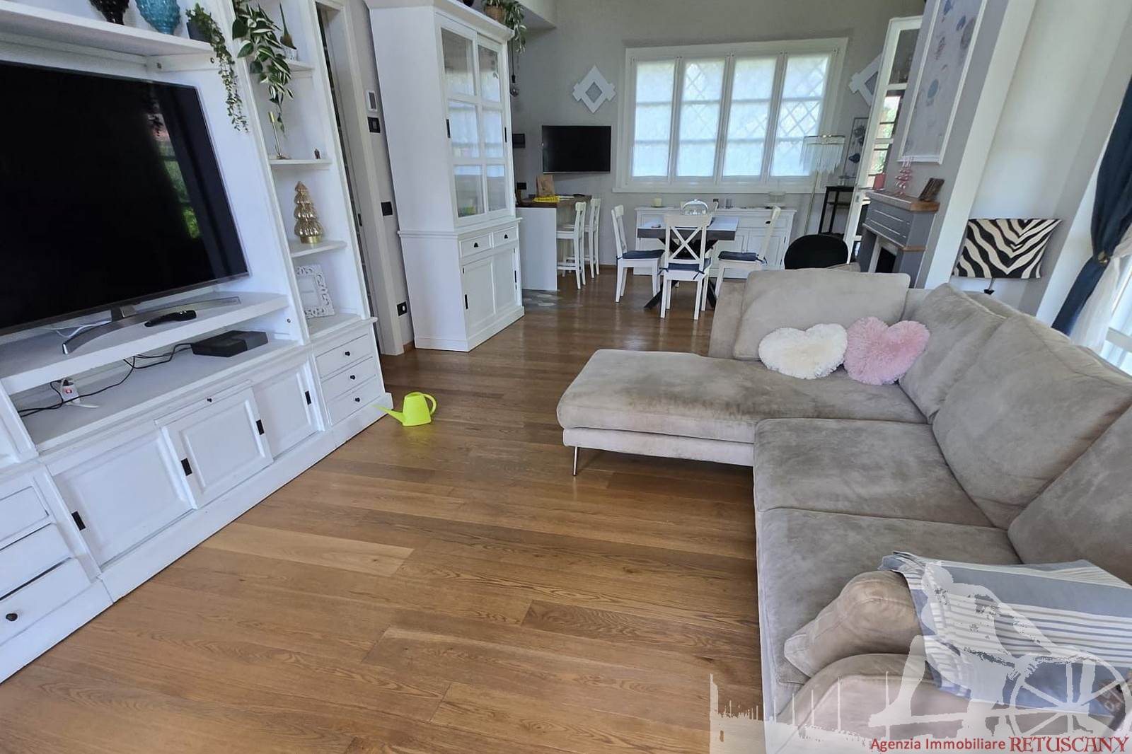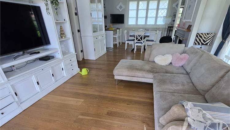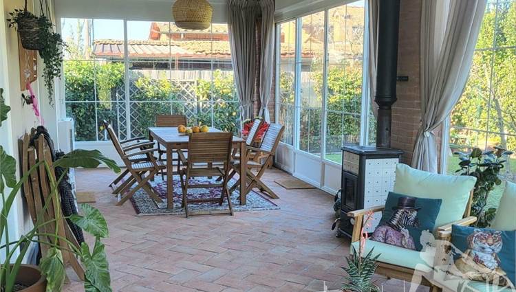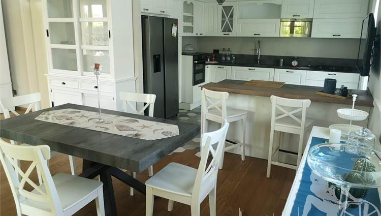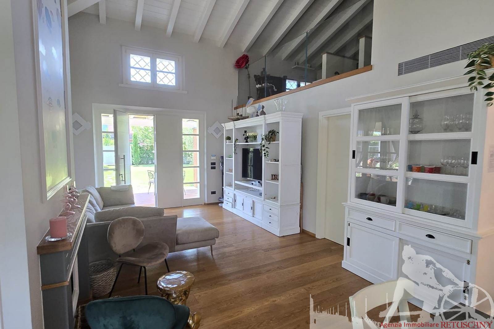 DISPONIBILE PER LA LOCAZIONE ESTIVA - Villa singola distribuita su due livelli con bel giardino circostante, di recente costruzione, ben arredata. Distanza dal mare circa 800 metri. Composta da: veranda, soggiorno pranzo, cucina, tre camere, quattro bagni, disimpegni, lavanderia. Con aria condizionata, allarme, internet. No animali.
