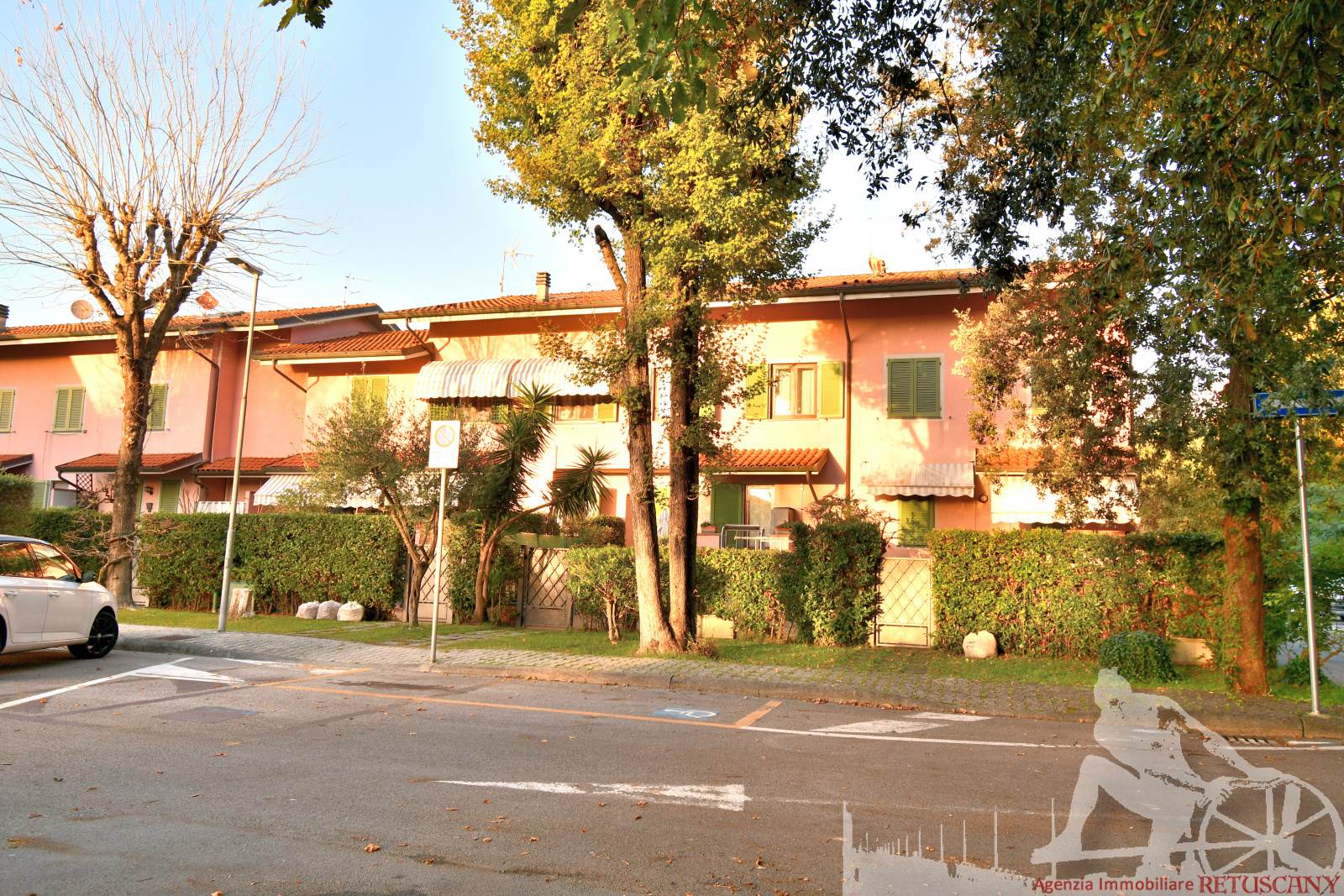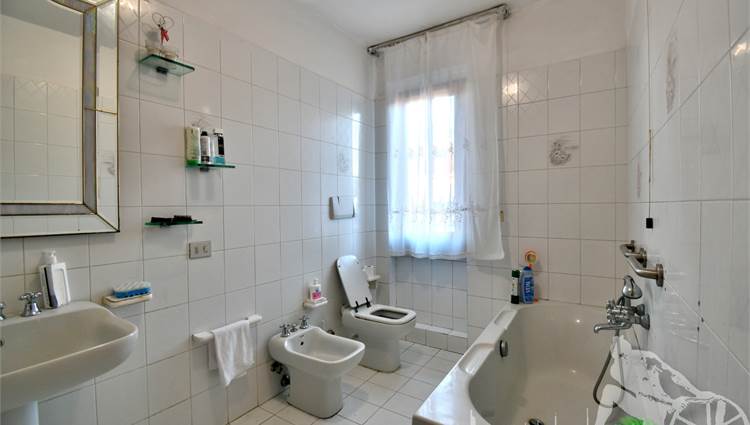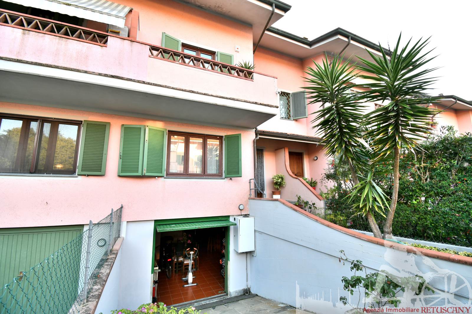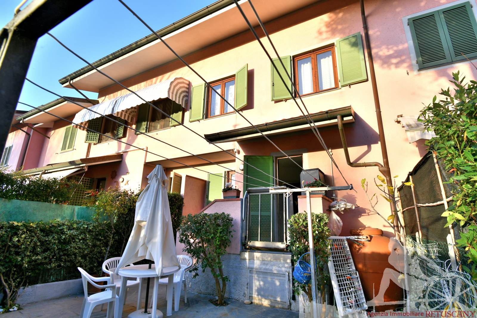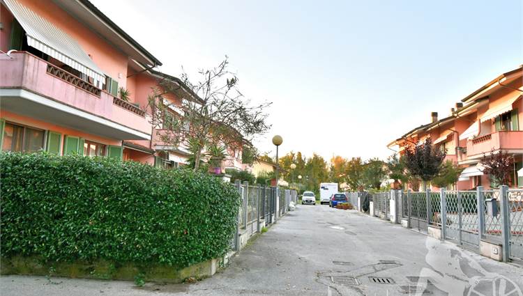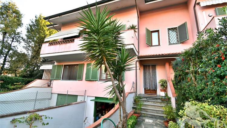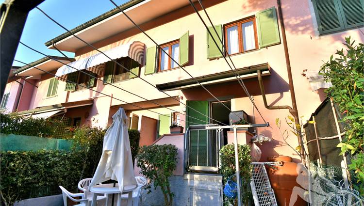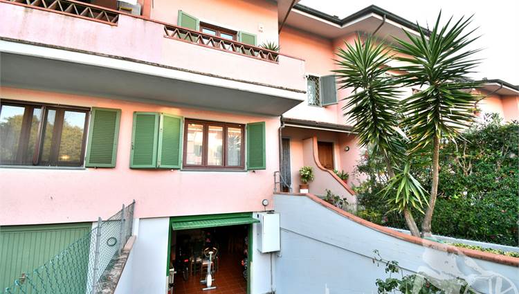 Villetta in schiera distribuita su due piani fuori terra oltre al sottotetto abitabile e il seminterrato, in prossimità di comodo parcheggio ma con possibilità anche di parcheggiare all'interno, con due piccole corti esclusive, anche per il pranzo e il soggiorno all'aperto. Abitazione di circa 112 mq più 57 di sottotetto e 55 di seminterrato, corti esclusive di circa 80 mq,distanza dal mare circa 1.200. Al piano terra: ingresso da terrazzo, soggiorno, cucina abitabile con terrazza, bagno di servizio. Al piano primo: camera matrimoniale con balcone, due camere singole, bagno, disimpegno. Al piano sottotetto: due camere matrimoniali, bagno, disimpegno. Al piano seminterrato: garage, cantina, ripostiglio. Superficie commerciale di circa 200 mq.