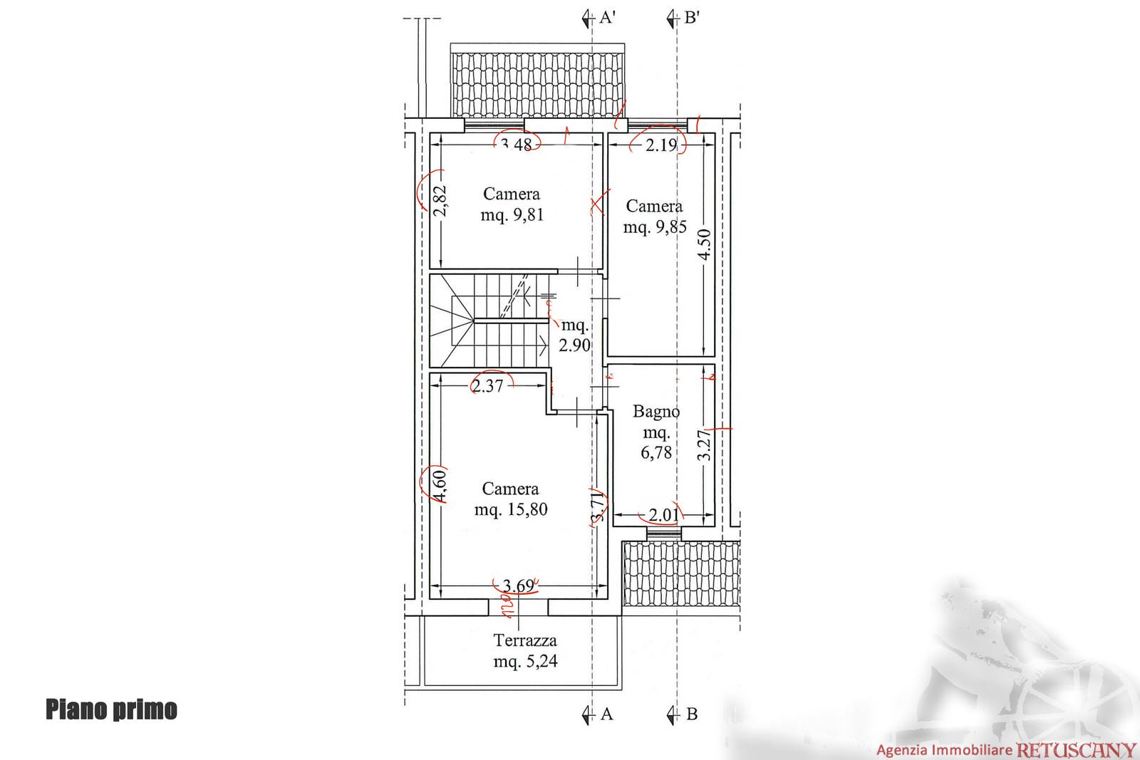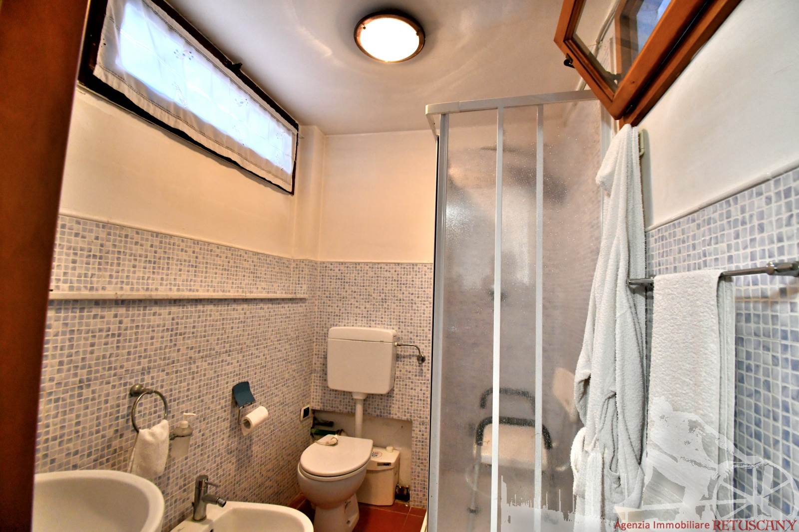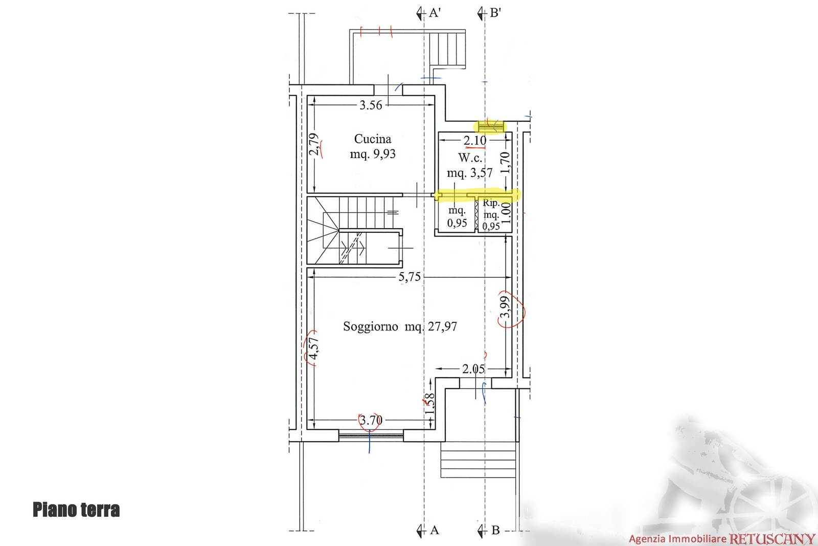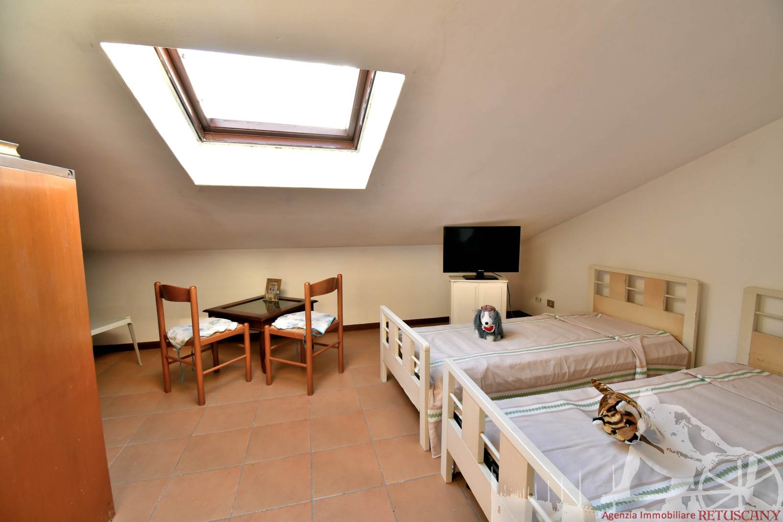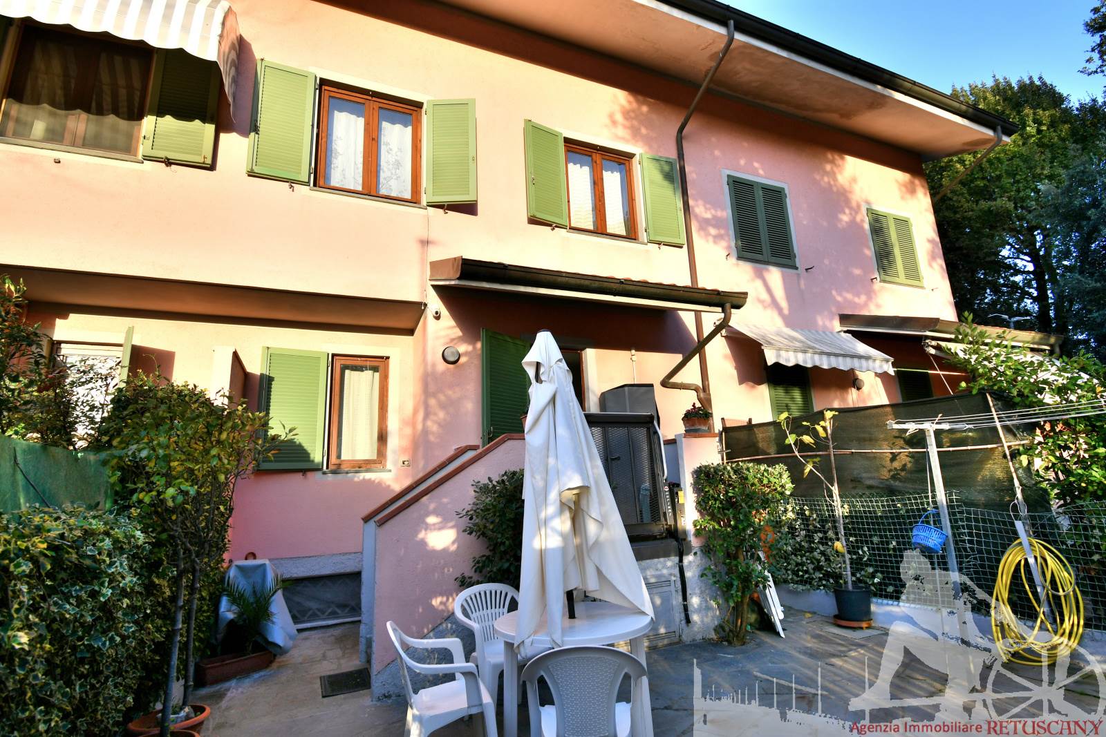 Villetta in schiera distribuita su due piani fuori terra oltre al sottotetto abitabile e il seminterrato, in prossimità di comodo parcheggio ma con possibilità anche di parcheggiare all'interno, con due piccole corti esclusive, anche per il pranzo e il soggiorno all'aperto. Abitazione di circa 112 mq più 57 di sottotetto e 55 di seminterrato, corti esclusive di circa 80 mq,distanza dal mare circa 1.200. Al piano terra: ingresso da terrazzo, soggiorno, cucina abitabile con terrazza, bagno di servizio. Al piano primo: camera matrimoniale con balcone, due camere singole, bagno, disimpegno. Al piano sottotetto: due camere matrimoniali, bagno, disimpegno. Al piano seminterrato: garage, cantina, ripostiglio. Superficie commerciale di circa 200 mq.