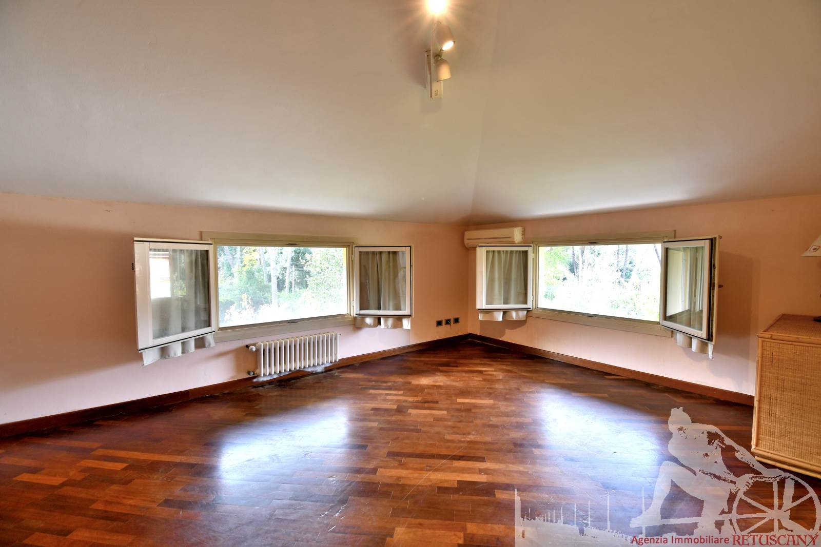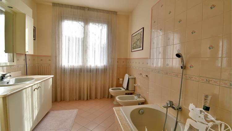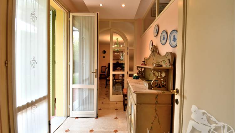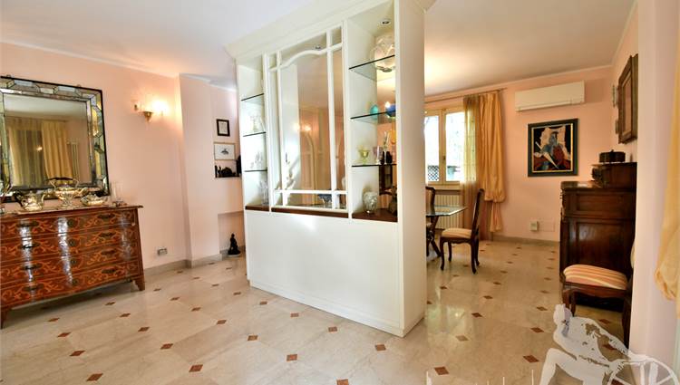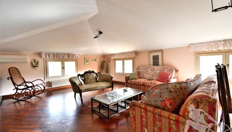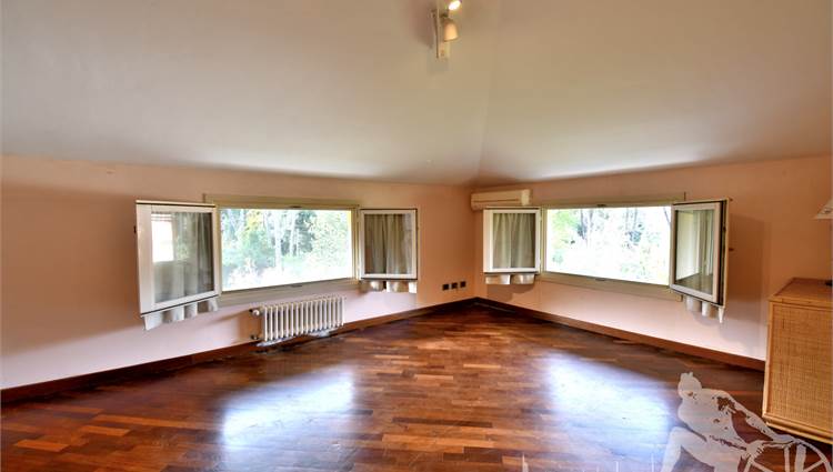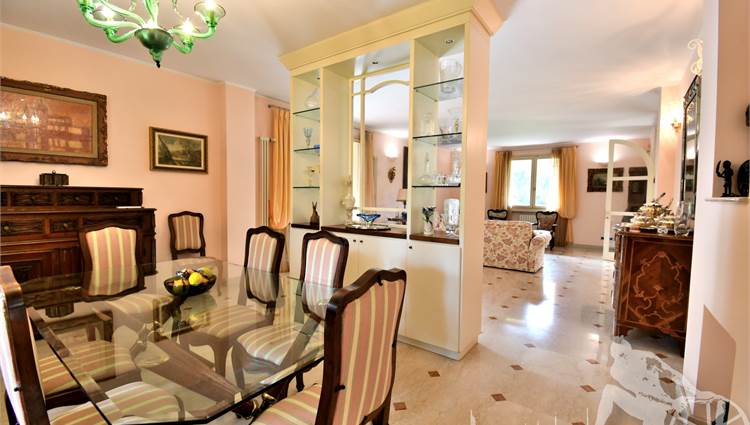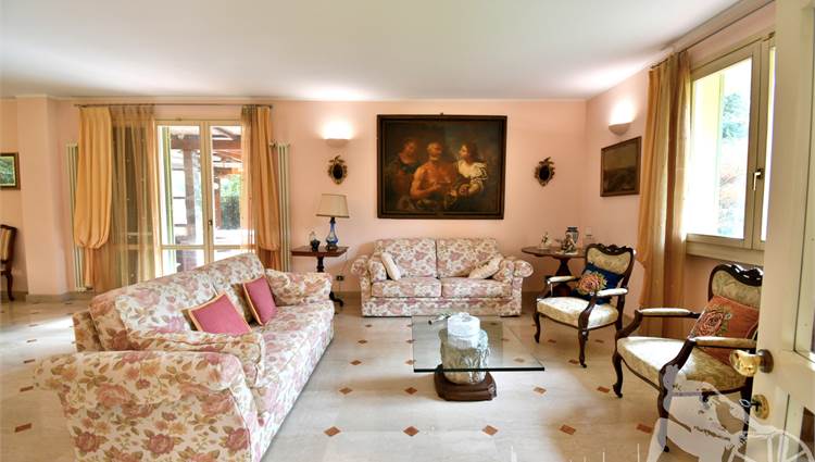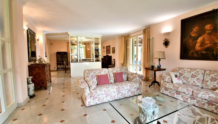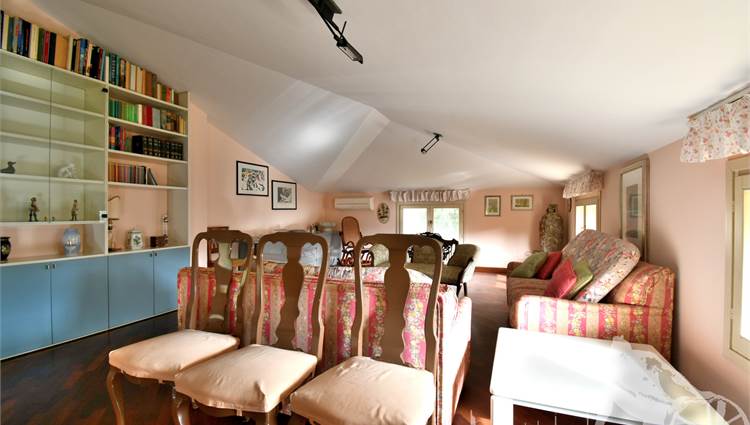 Prestigiosa villa di grandi dimensioni nella pineta di Ronchi, con parco privato e posti auto interni alla proprietà, distribuita su tre livelli fuori terra. Abitazione di circa 450 mq compreso un sottotetto in parte abitabile e in parte comunque fruibile in totalità, giardino di circa 3.000 mq, distanza dal mare circa 400 metri. Al piano terra: ingresso su vano scala, doppio soggiorno con zona pranzo, cucina abitabile, ampio studio, bagno con antibagno, disimpegno, ripostiglio, spazi esterni per il pranzo e il soggiorno all'aperto. Al piano primo: quattro camere matrimoniali di cui una con ampio bagno privato, due ulteriori bagni, disimpegni, tre balconi che servono direttamente tre delle quattro camere. Al piano sottotetto: studio/soggiorno, camera, bagno, disimpegno e ampio locale a destinazione soffitta ma di altezza completamente fruibile.