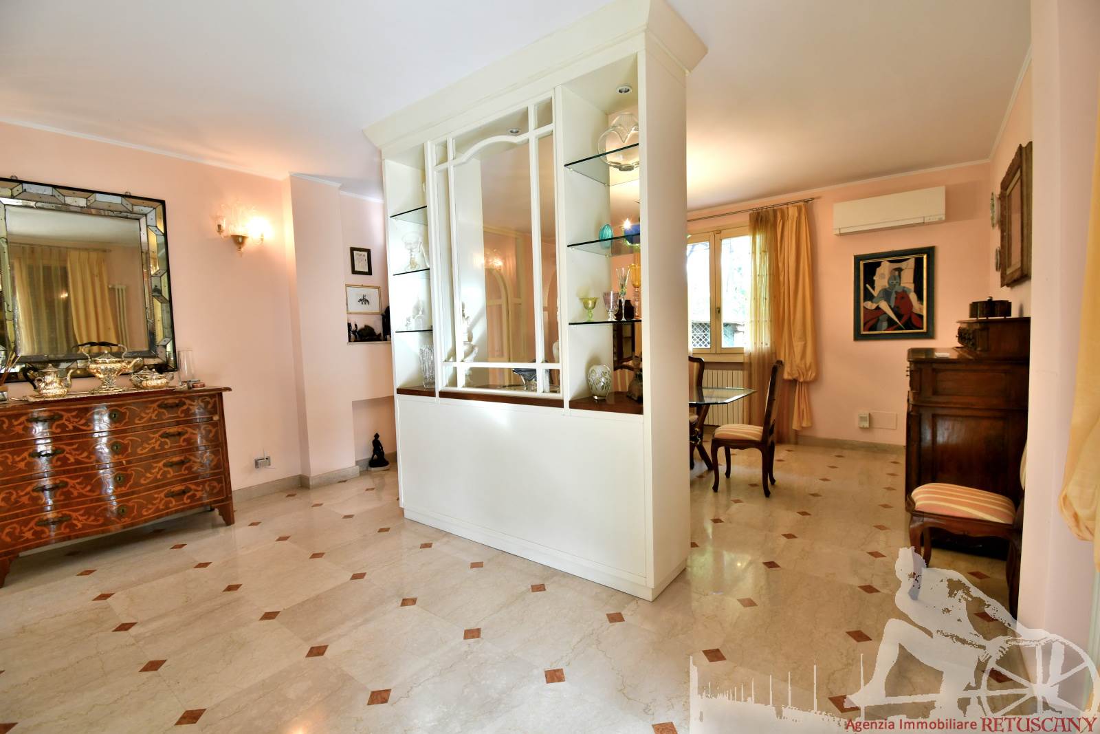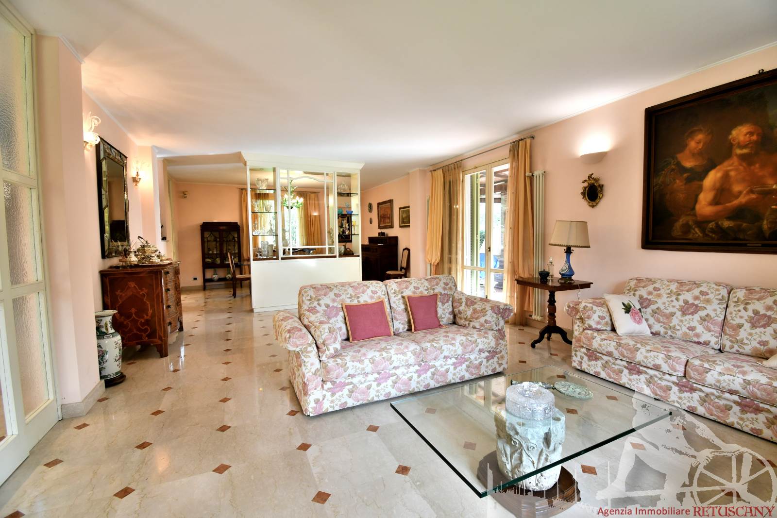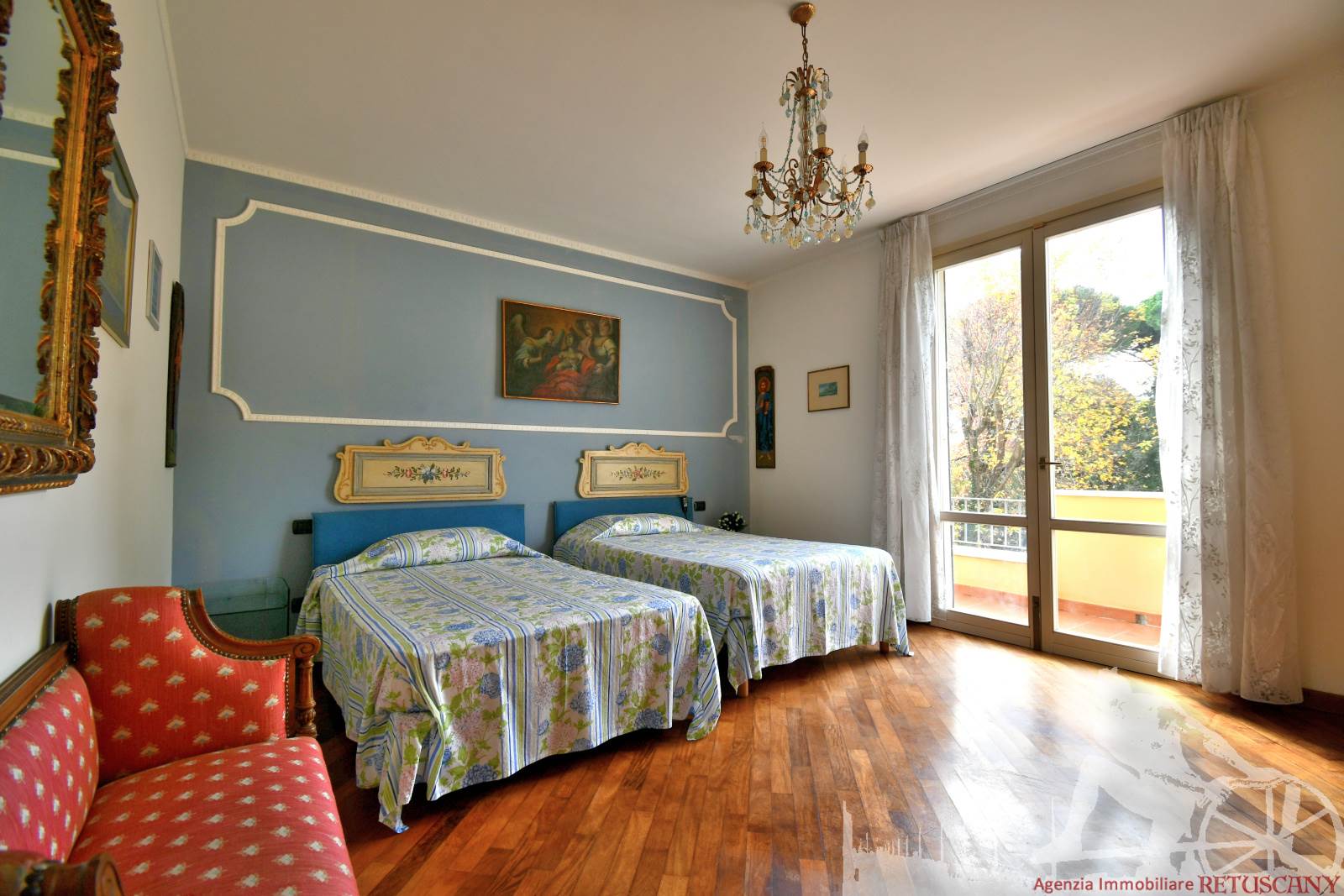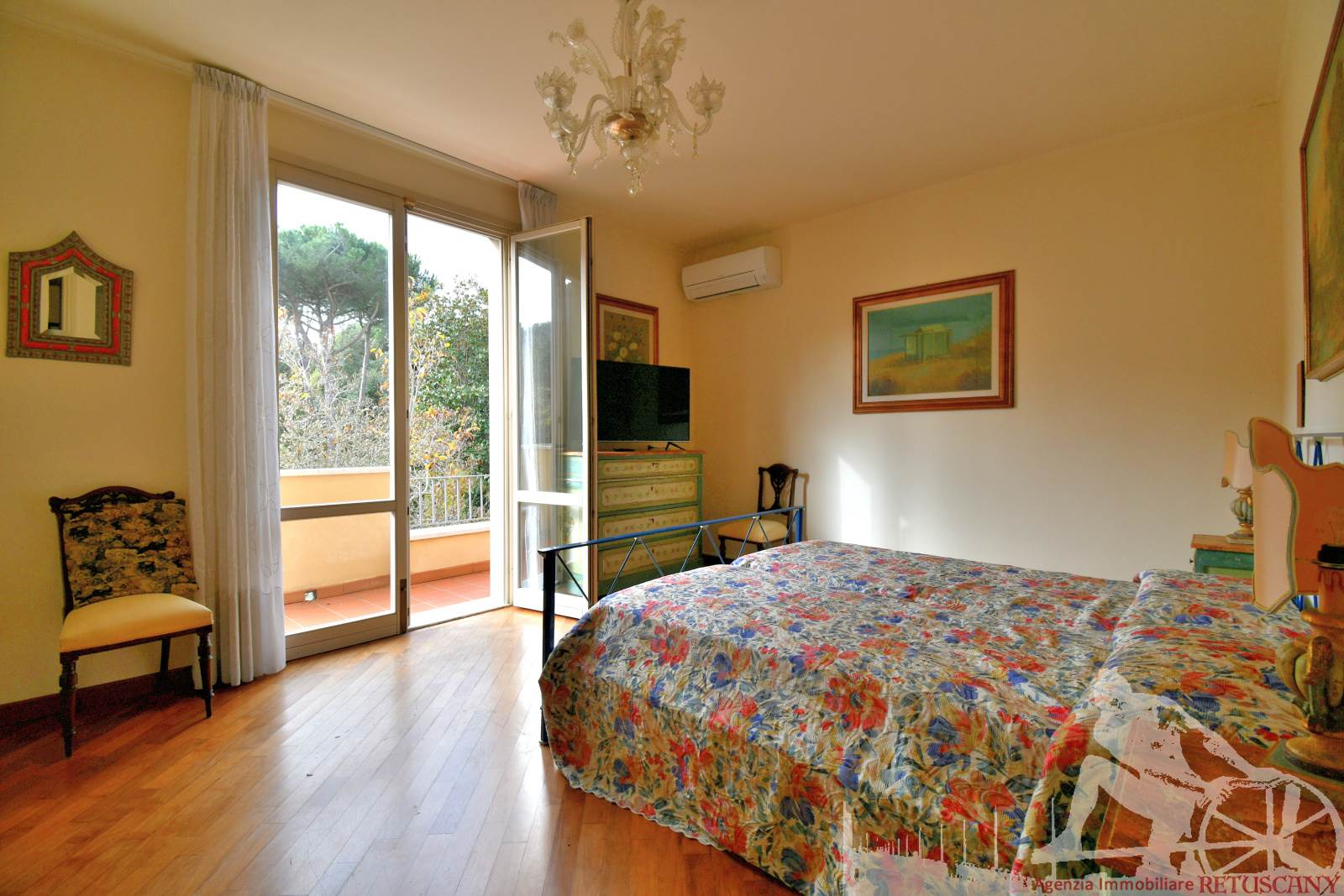 Prestigiosa villa di grandi dimensioni nella pineta di Ronchi, con parco privato e posti auto interni alla proprietà, distribuita su tre livelli fuori terra. Abitazione di circa 450 mq compreso un sottotetto in parte abitabile e in parte comunque fruibile in totalità, giardino di circa 3.000 mq, distanza dal mare circa 400 metri. Al piano terra: ingresso su vano scala, doppio soggiorno con zona pranzo, cucina abitabile, ampio studio, bagno con antibagno, disimpegno, ripostiglio, spazi esterni per il pranzo e il soggiorno all'aperto. Al piano primo: quattro camere matrimoniali di cui una con ampio bagno privato, due ulteriori bagni, disimpegni, tre balconi che servono direttamente tre delle quattro camere. Al piano sottotetto: studio/soggiorno, camera, bagno, disimpegno e ampio locale a destinazione soffitta ma di altezza completamente fruibile.