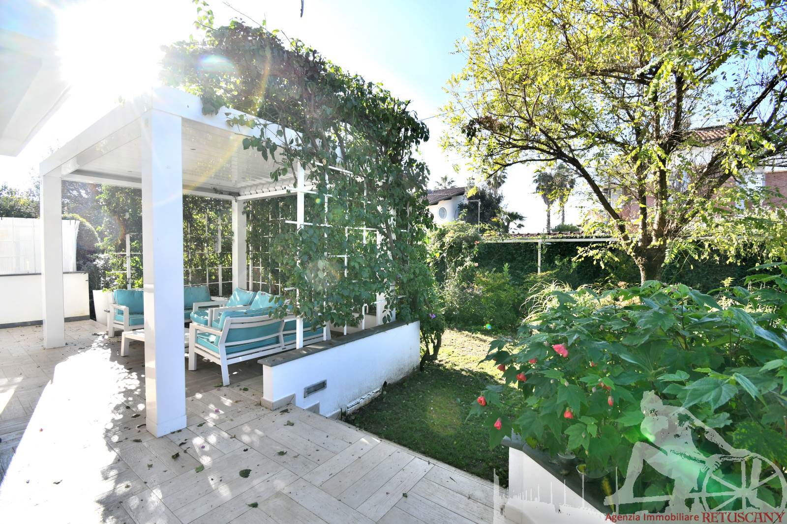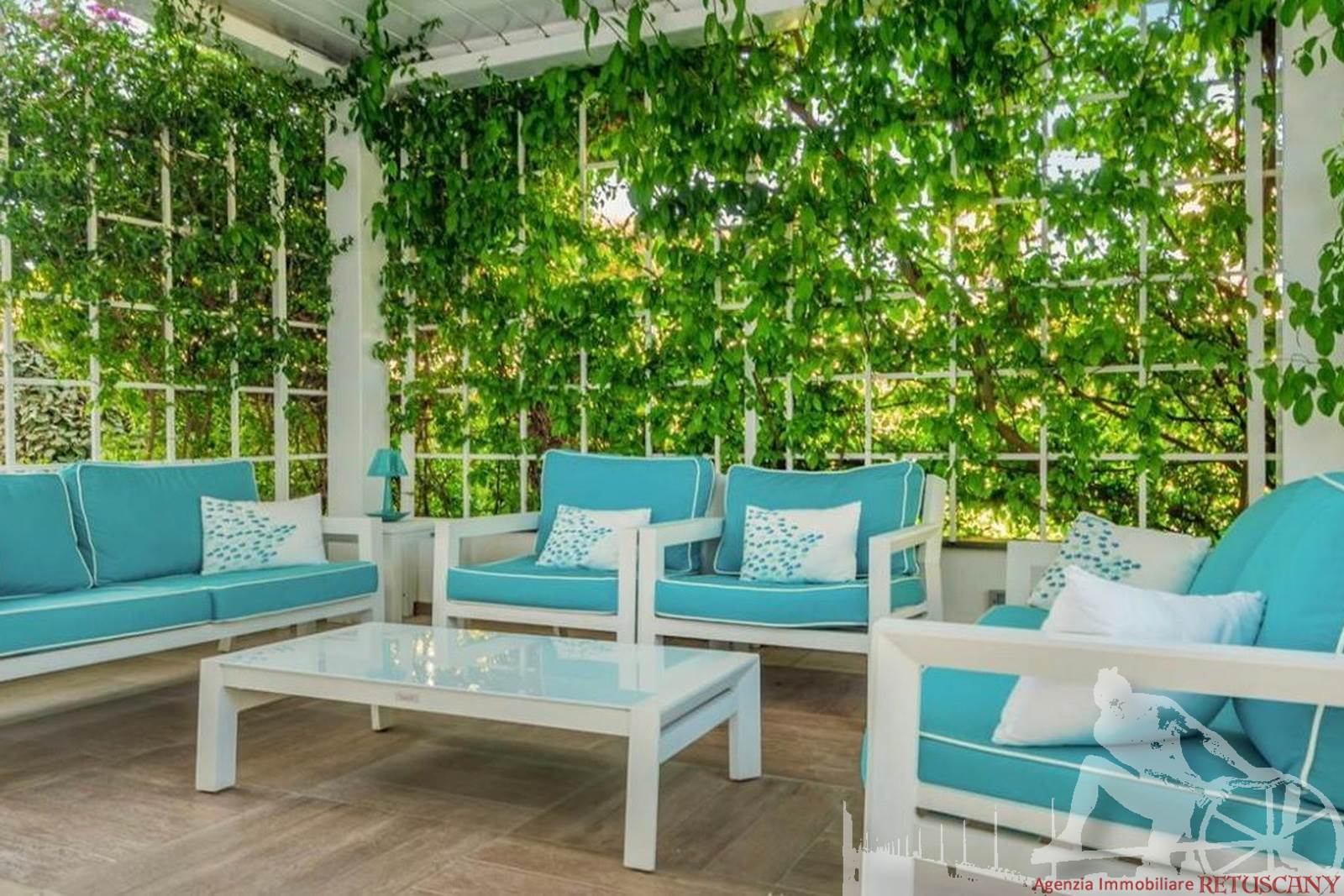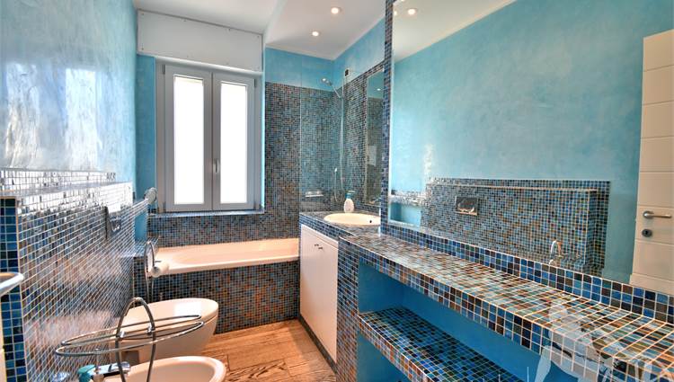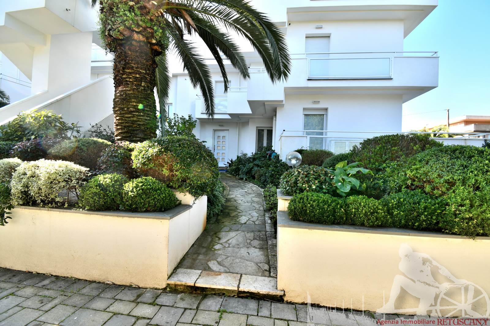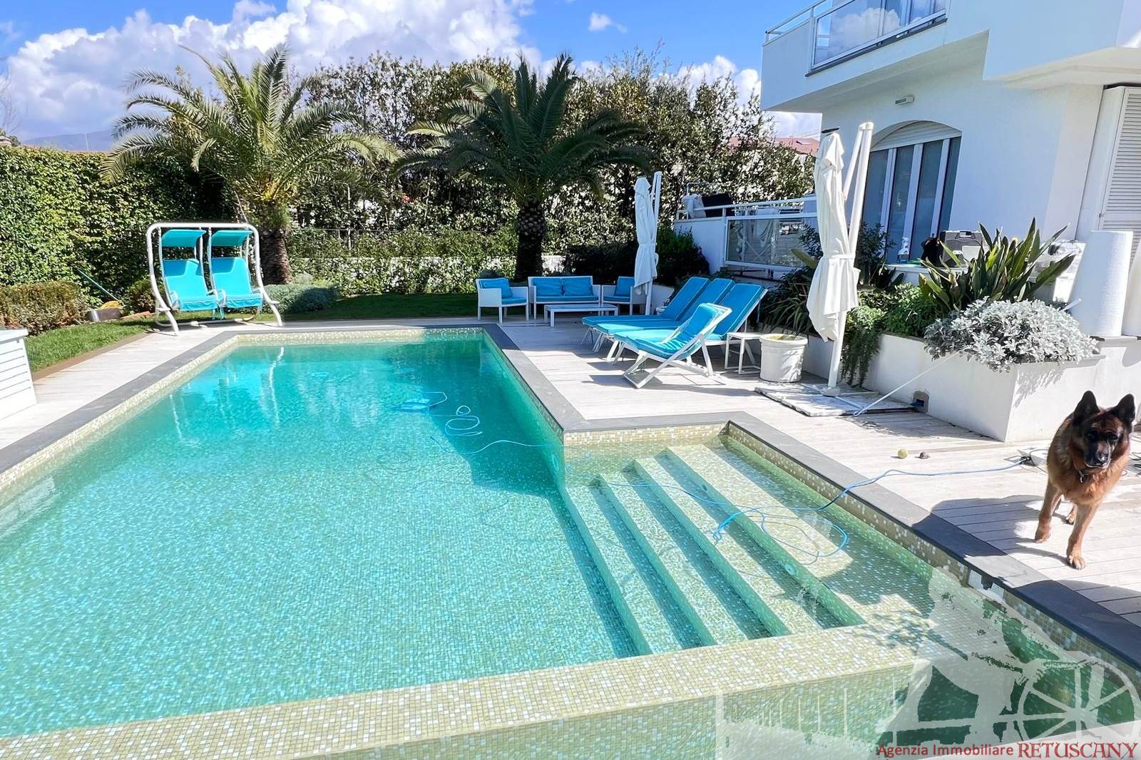 Appartamento in villa trifamiliare con piscina esclusiva, distribuito su due livelli con cantine al piano interrato. Abitazione di circa 110 mq, cantine di circa 100 mq, giardino esclusivo di circa 120 mq, distanza dal mare meno di 100 metri. Superficie commerciale di circa 220 mq. Al piano terra: ingresso, soggiorno pranzo, cucina abitabile, bagno di servizio. Al piano primo: due camere matrimoniali, camera singola, bagno, disimpegno. Al piano interrato: due cantine divise in vari vani.