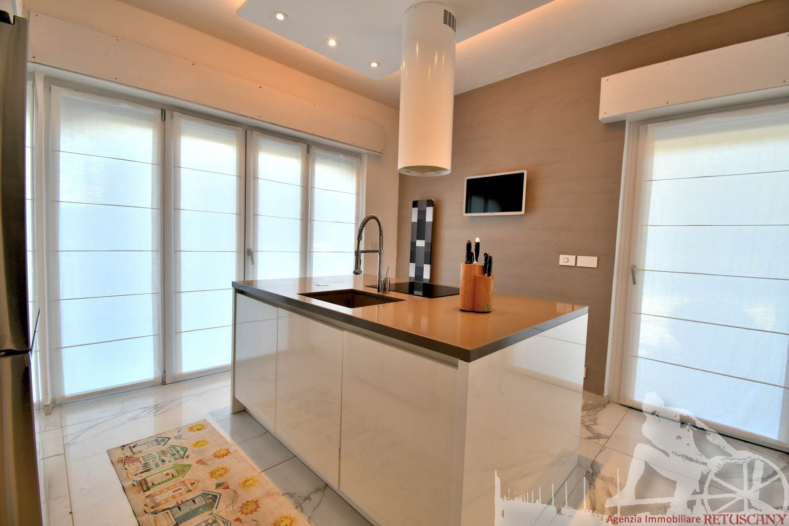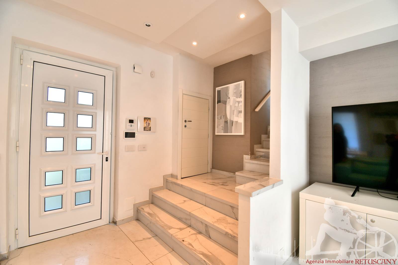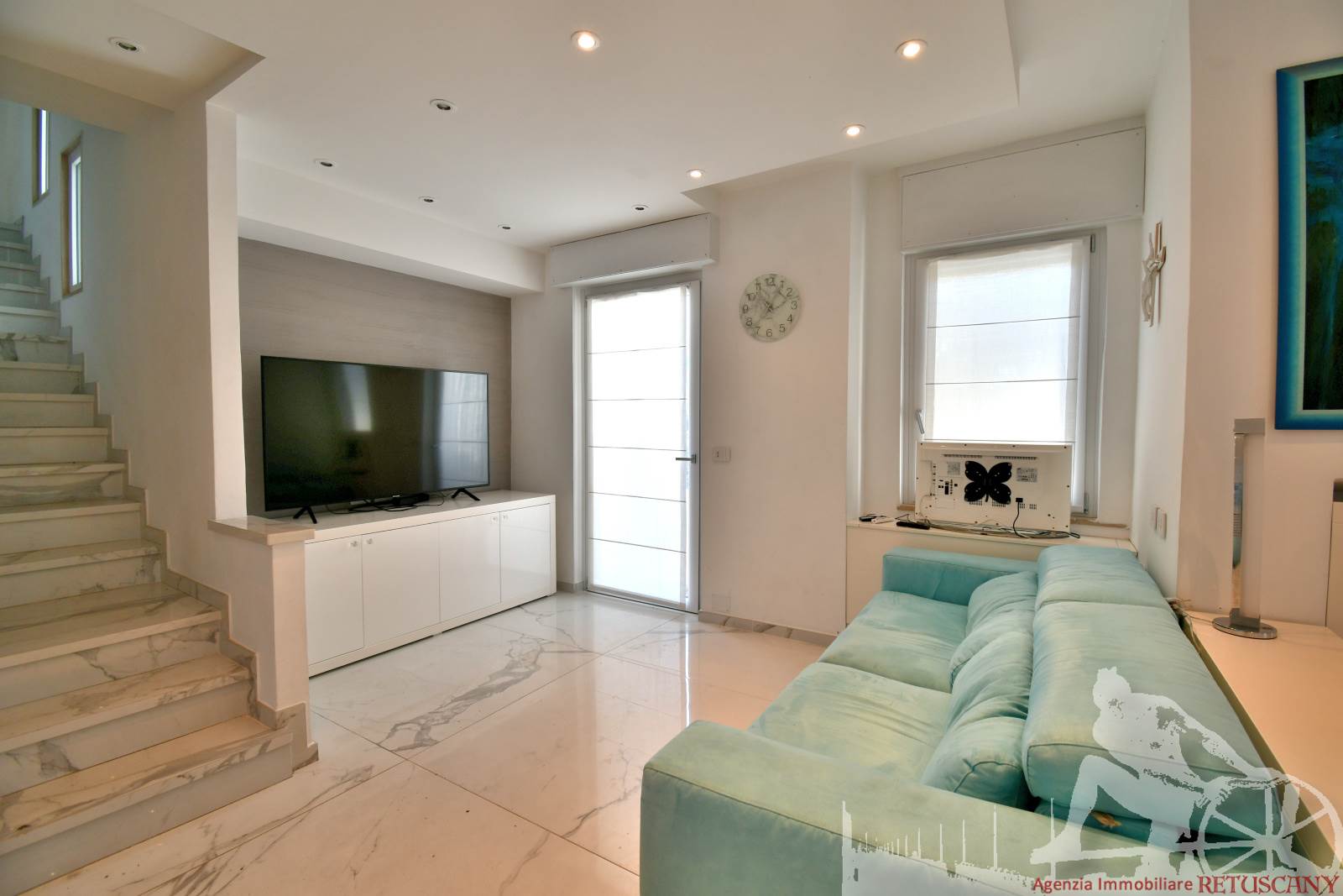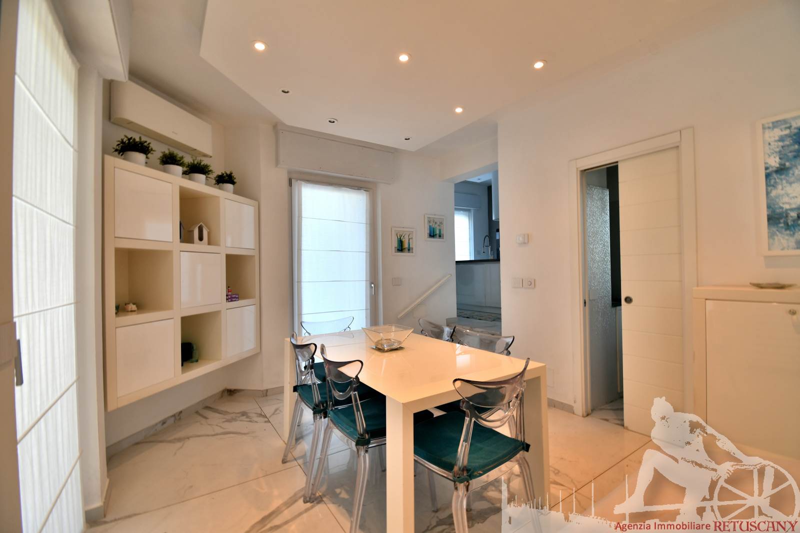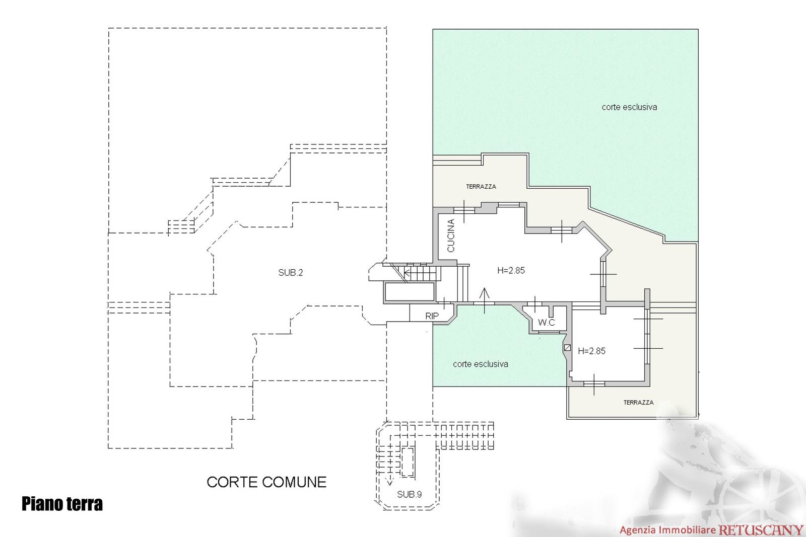 Appartamento in villa trifamiliare con piscina esclusiva, distribuito su due livelli con cantine al piano interrato. Abitazione di circa 110 mq, cantine di circa 100 mq, giardino esclusivo di circa 120 mq, distanza dal mare meno di 100 metri. Superficie commerciale di circa 220 mq. Al piano terra: ingresso, soggiorno pranzo, cucina abitabile, bagno di servizio. Al piano primo: due camere matrimoniali, camera singola, bagno, disimpegno. Al piano interrato: due cantine divise in vari vani.