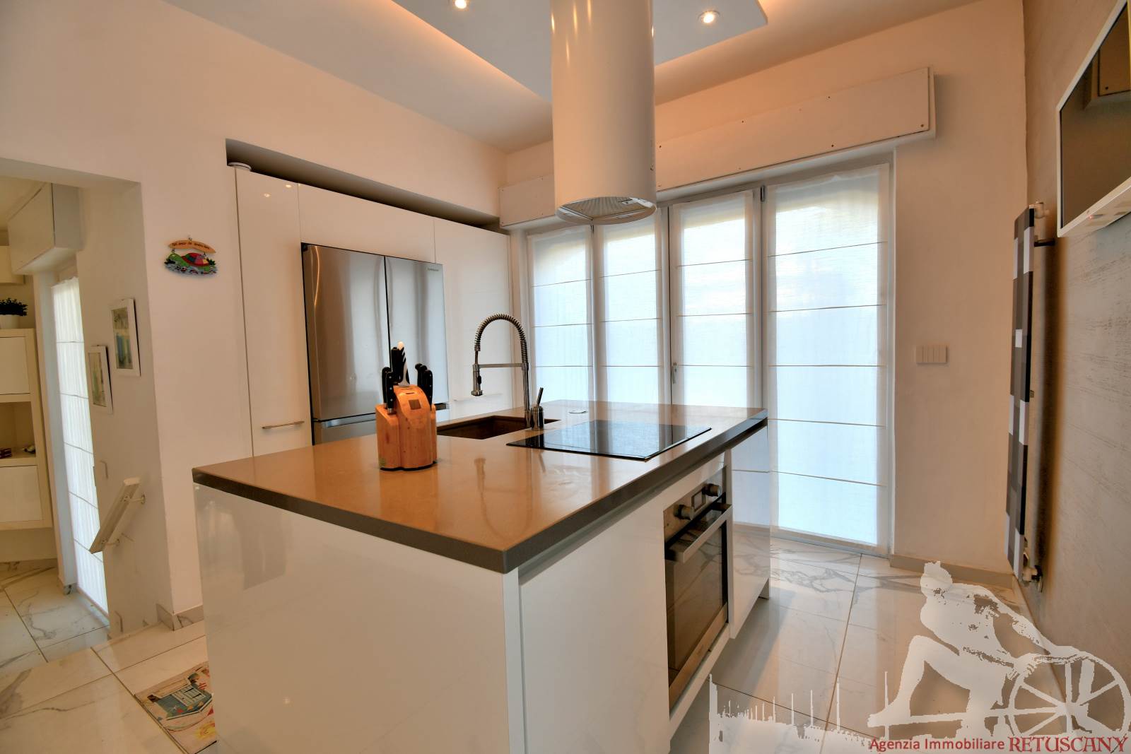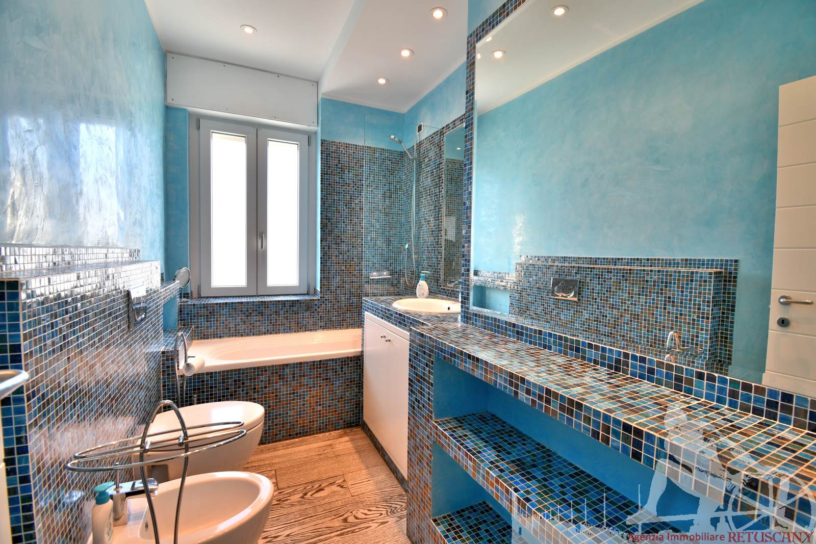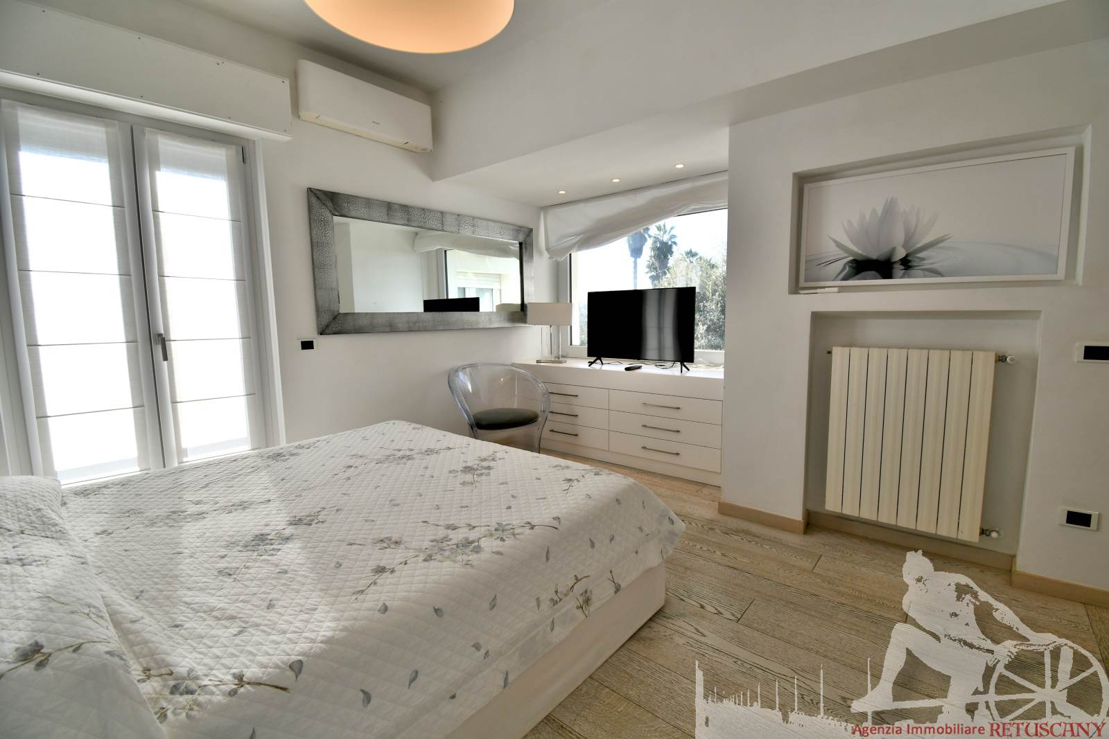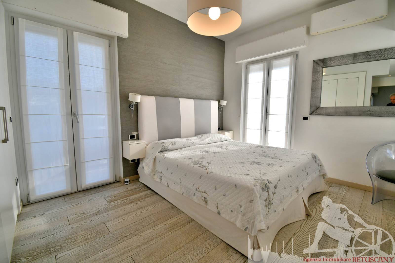 Appartamento in villa trifamiliare con piscina esclusiva, distribuito su due livelli con cantine al piano interrato. Abitazione di circa 110 mq, cantine di circa 100 mq, giardino esclusivo di circa 120 mq, distanza dal mare meno di 100 metri. Superficie commerciale di circa 220 mq. Al piano terra: ingresso, soggiorno pranzo, cucina abitabile, bagno di servizio. Al piano primo: due camere matrimoniali, camera singola, bagno, disimpegno. Al piano interrato: due cantine divise in vari vani.