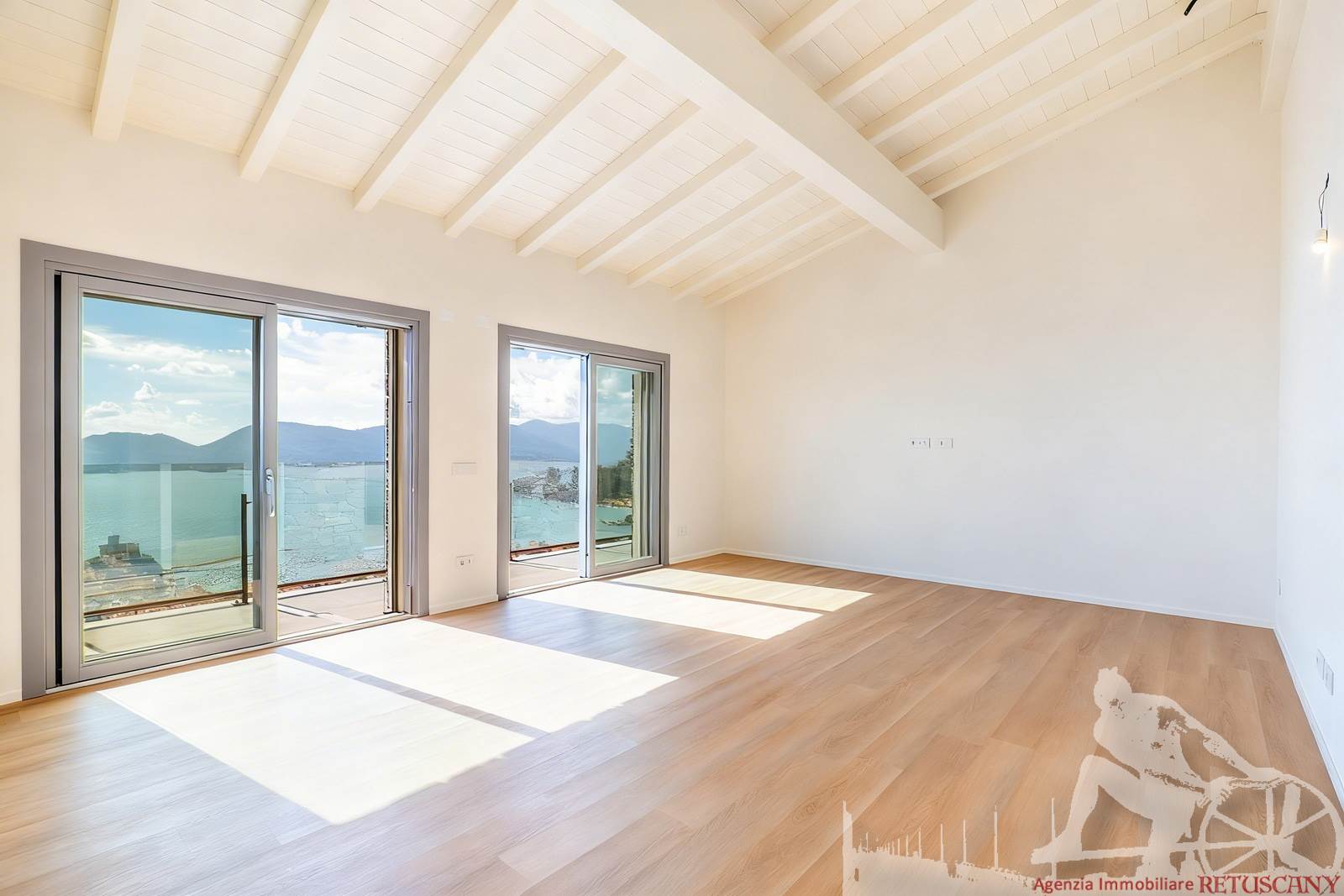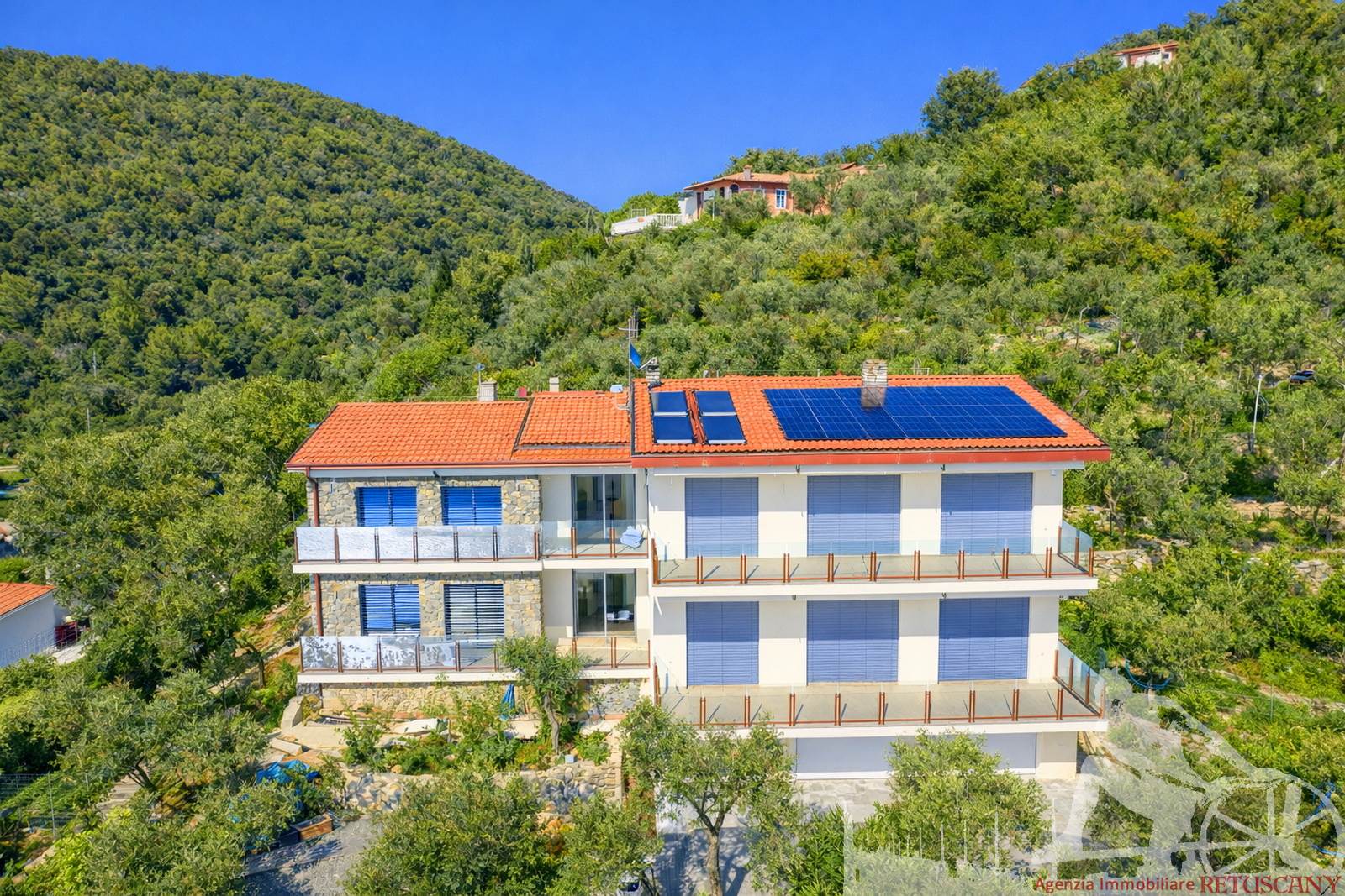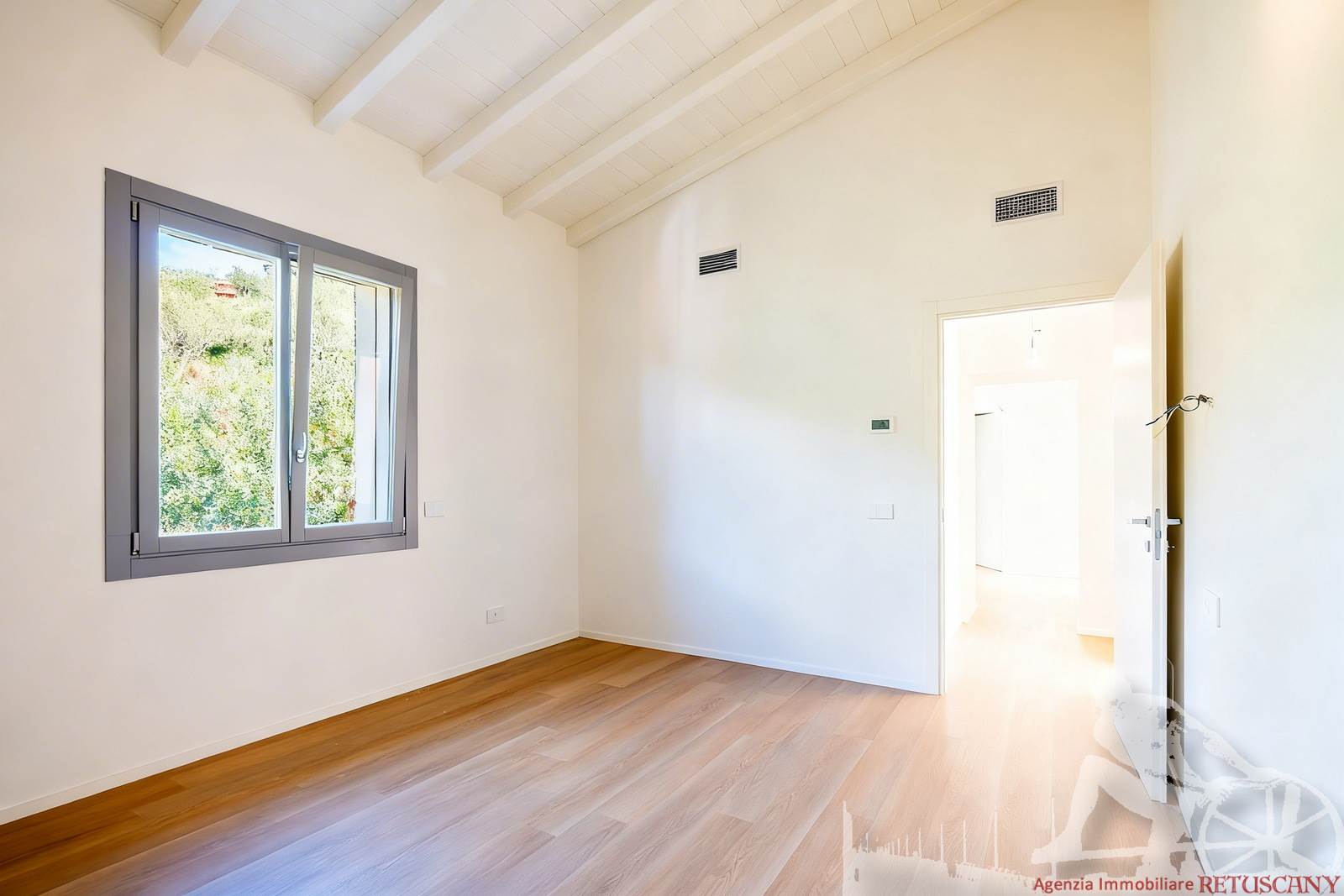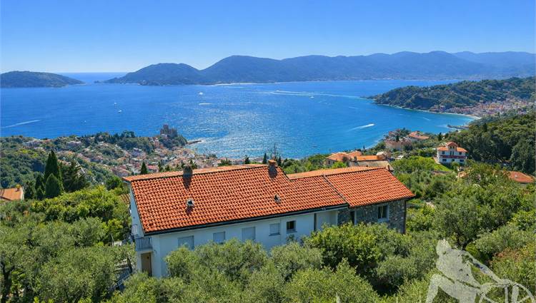 Appartamento in villa in nuova costruzione con spettacolare vista panoramica verso il golfo, con garage e giardino eclusivo, con finiture di pregio, ubicato in posizione dominante in contesto elegante. Abitazione di circa 95 mq, balcone/terrazza verso il mare di circa 16 mq, portico di circa 5 mq, giardino esclusivo di circa 490 mq e garage, distanza dal porticciolo di Lerici percorribile in 8 minuti di auto. Composto da: ingresso, soggiorno pranzo con cucina a vista, camera matrimoniale, camera singola, due bagni di cui uno con angolo lavanderia. Superficie commerciale di circa 150 mq. Con possibilità di realizzare una piscina.