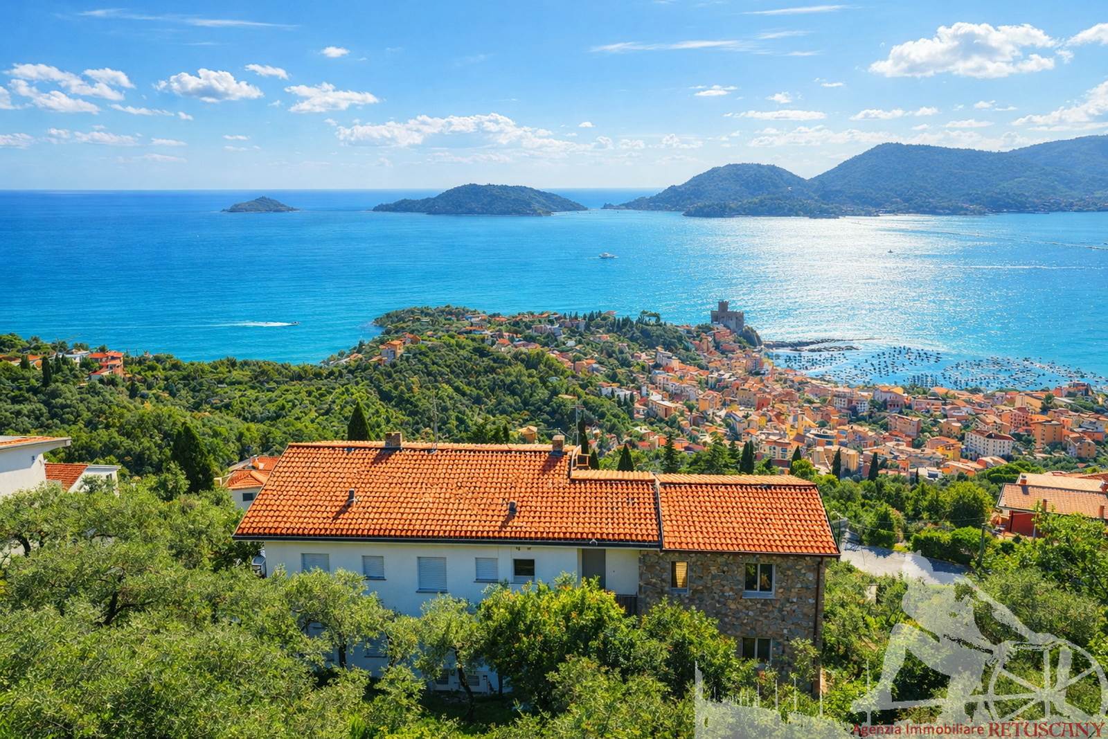 Villa affiancata di nuova costruzione con spettacolare vista panoramica verso il golfo, con garage e posto auto, giardino eclusivo con possibilità di piscina, con finiture di pregio, ubicato in posizione dominante in contesto elegante. Abitazione di circa 190 mq, balconi/terrazze verso il mare di circa 32 mq, portico di circa 10 mq, giardino esclusivo di circa 800 mq e due posti auto, distanza dal porticciolo di Lerici percorribile in 8 minuti di auto. Composto da: doppio ingresso, soggiorno pranzo con cucina a vista, salone panoramico, due camere matrimoniali, due camere singole, quattro bagni di cui uno con angolo lavanderia. Superficie commerciale di circa 280 mq.